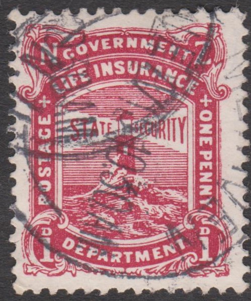 Neuseeland - Staatliche Lebensversicherung MiNr. 33 mit Buchdruck-Aufdruck der neuen Währung "1 c" in Schwarz (auf 1 P = MiNr. 26):