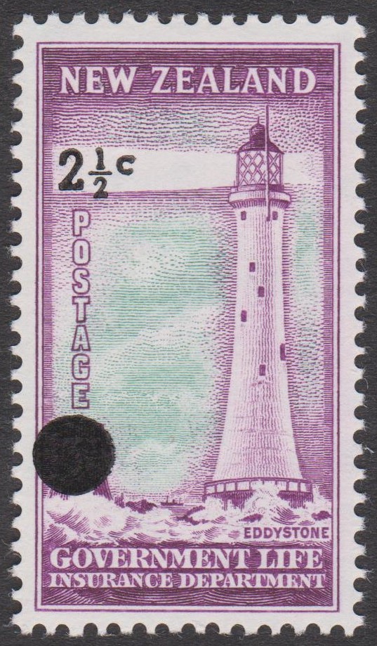 Neuseeland - Staatliche Lebensversicherung MiNr. 35 mit Buchdruck-Aufdruck der neuen Währung "2 1/2 c" in Schwarz (auf 3 P = MiNr. 29):