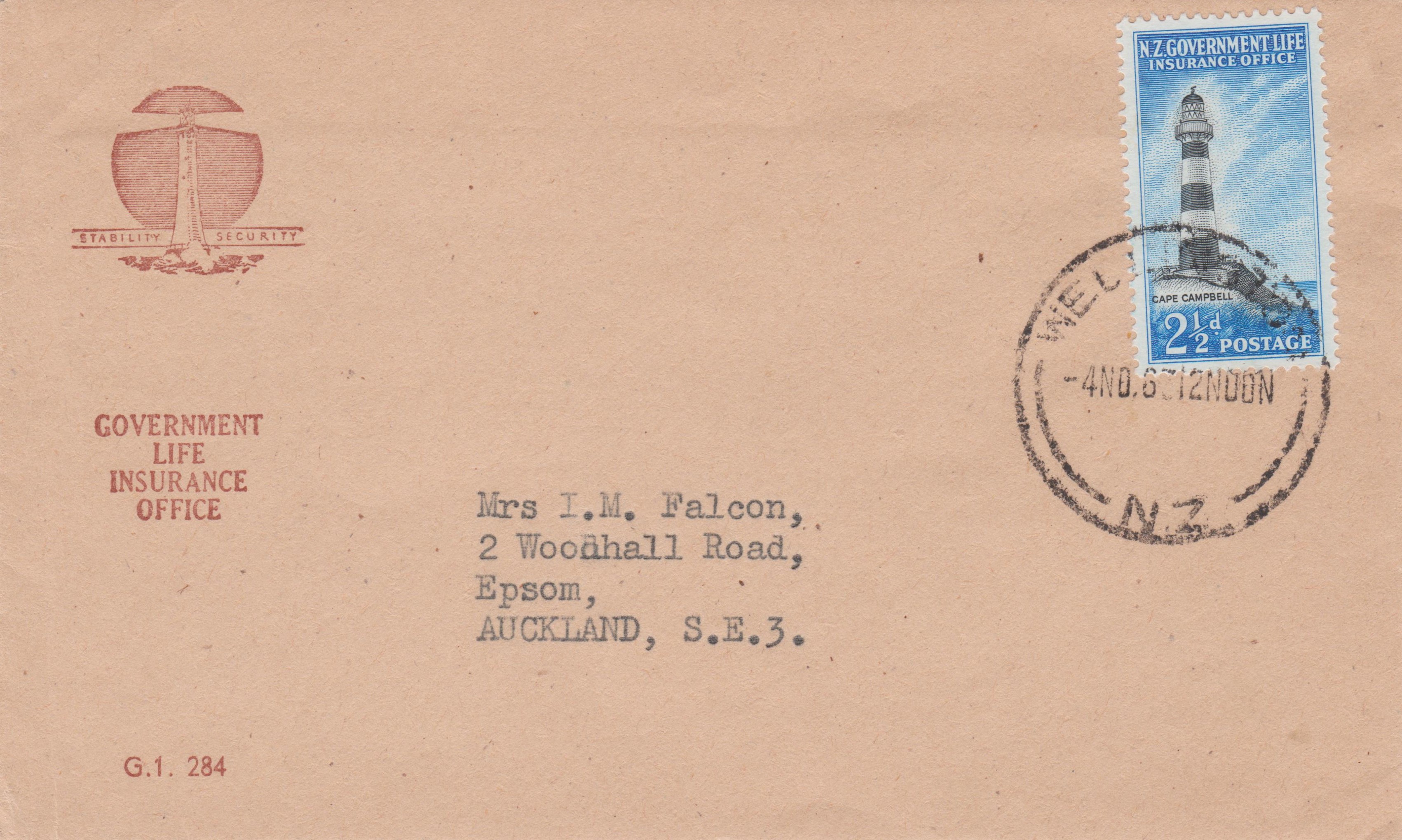 Neuseeland - Staatliche Lebensversicherung MiNr. 38 mit Buchdruck-Aufdruck der neuen Währung "10 c" in Schwarz (auf 1 Sh = MiNr. 32):