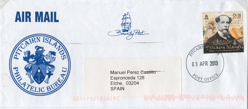 - Die 61 Menschen, die auf der Insel leben, werden 4 – 5 Mal im Jahr von einem Containerschiff versorgt, das auch die Post mitnimmt. Seltener Beleg!