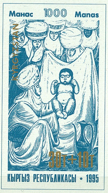 diese Serie ist am 23.6.1995 erschienen zu dem Thema 1000 Jahre kirgisisches Nationalepos "Manas". Die beiden gezeigten Marken zeigen folgende Motive: