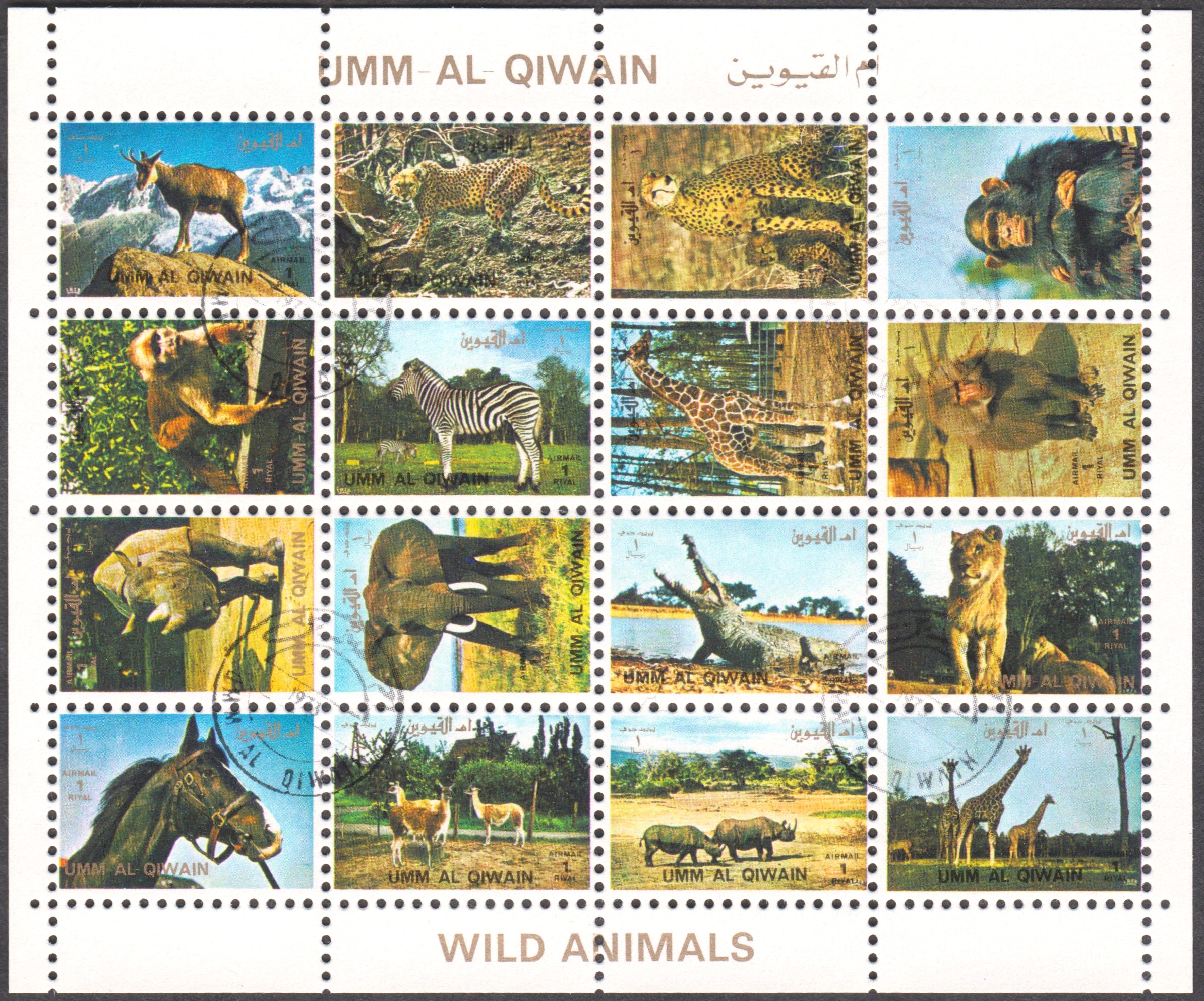 Zusammendruck von 16 Marken mit Tiermotiven:
