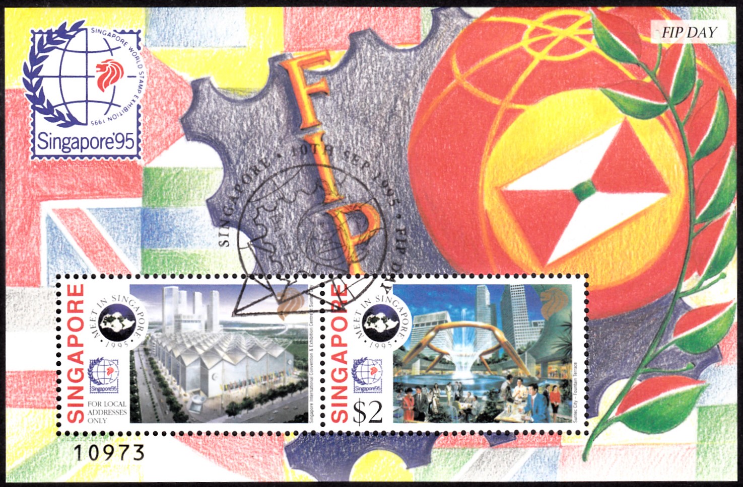 Der Schlusstag der Ausstellung war der "FIP Day" am 10. September 1995. Hier zeige ich auch diesen Block (MiNr Block 46), der der FIP gewidmet ist.