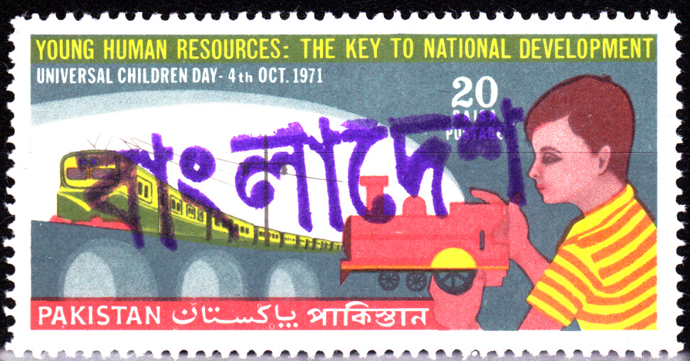 Beim Typ B gibt es auch einige Handstempel, die den Landesnamen in zwei Worten zeigen: Bangla Desh, hier ein Beispiel.