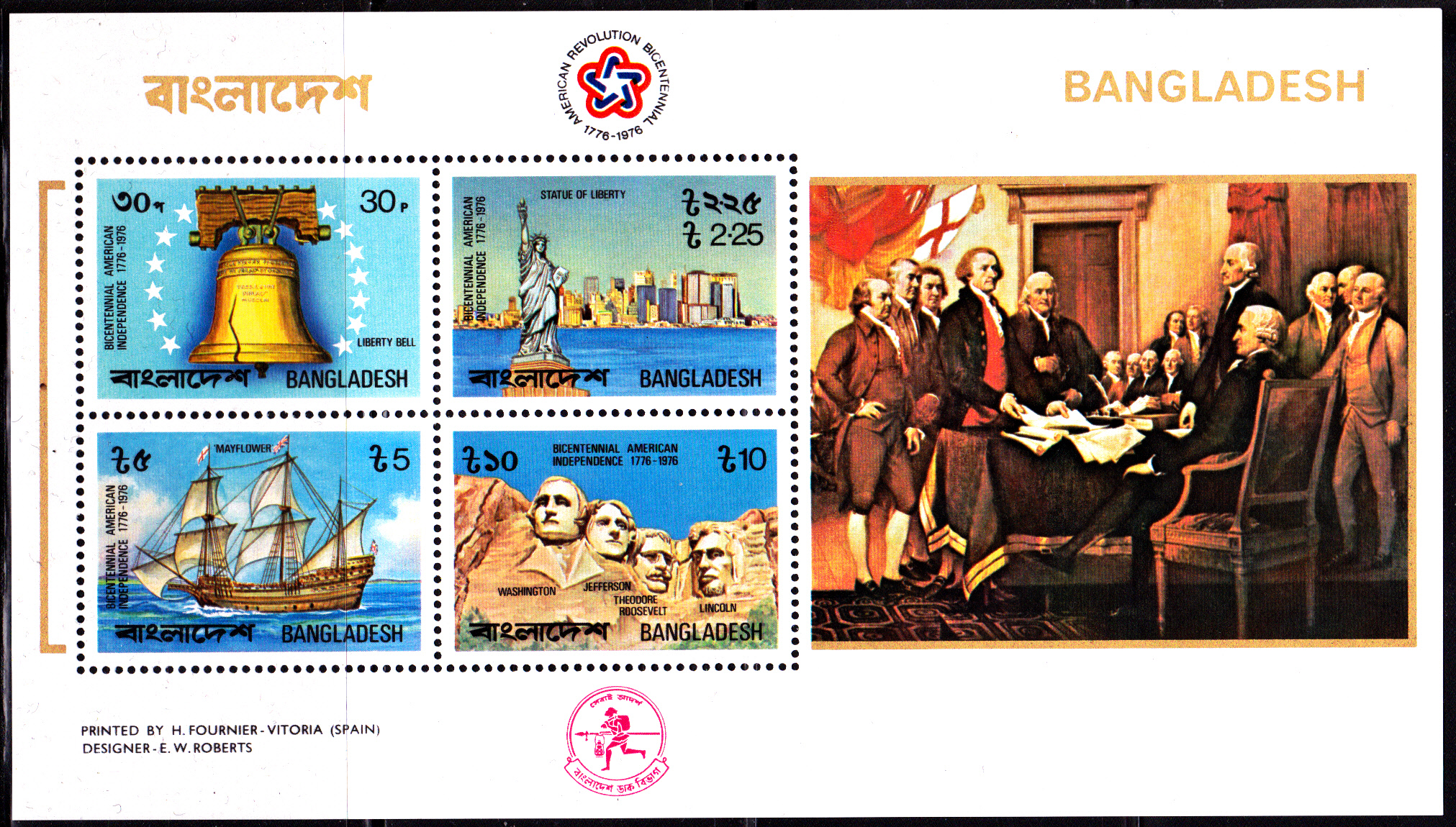 - Wert zu 2,25 Taka (MiNr 79) vom rechten oberen Bogenrand mit Druckvermerk