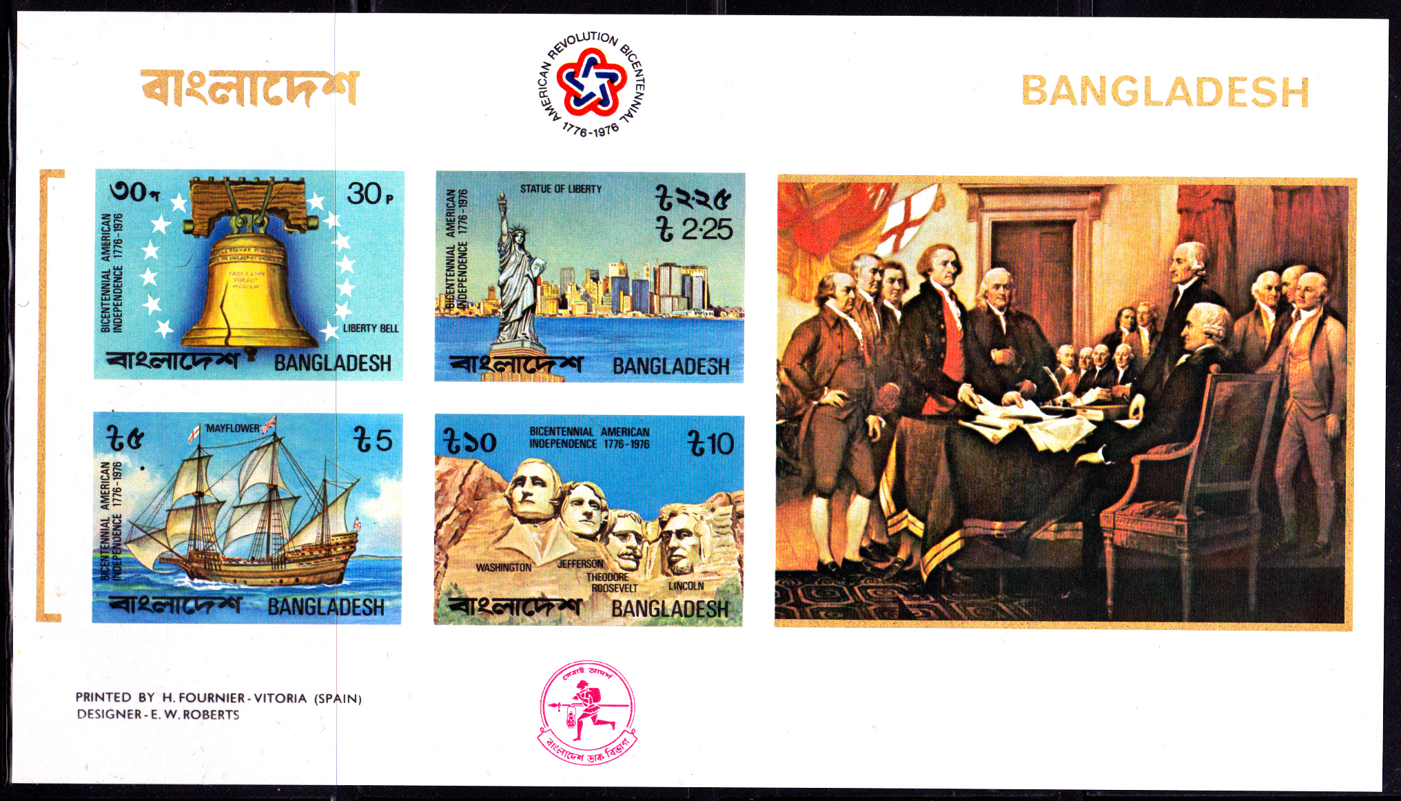 Am 29.Mai 1976 erschien in Bangladesch diese Serie mit vier Marken (MiNr 74 - 77) zum Thema "200 Jahre Unabhängigkeit der Vereinigten Staaten von Amerika":