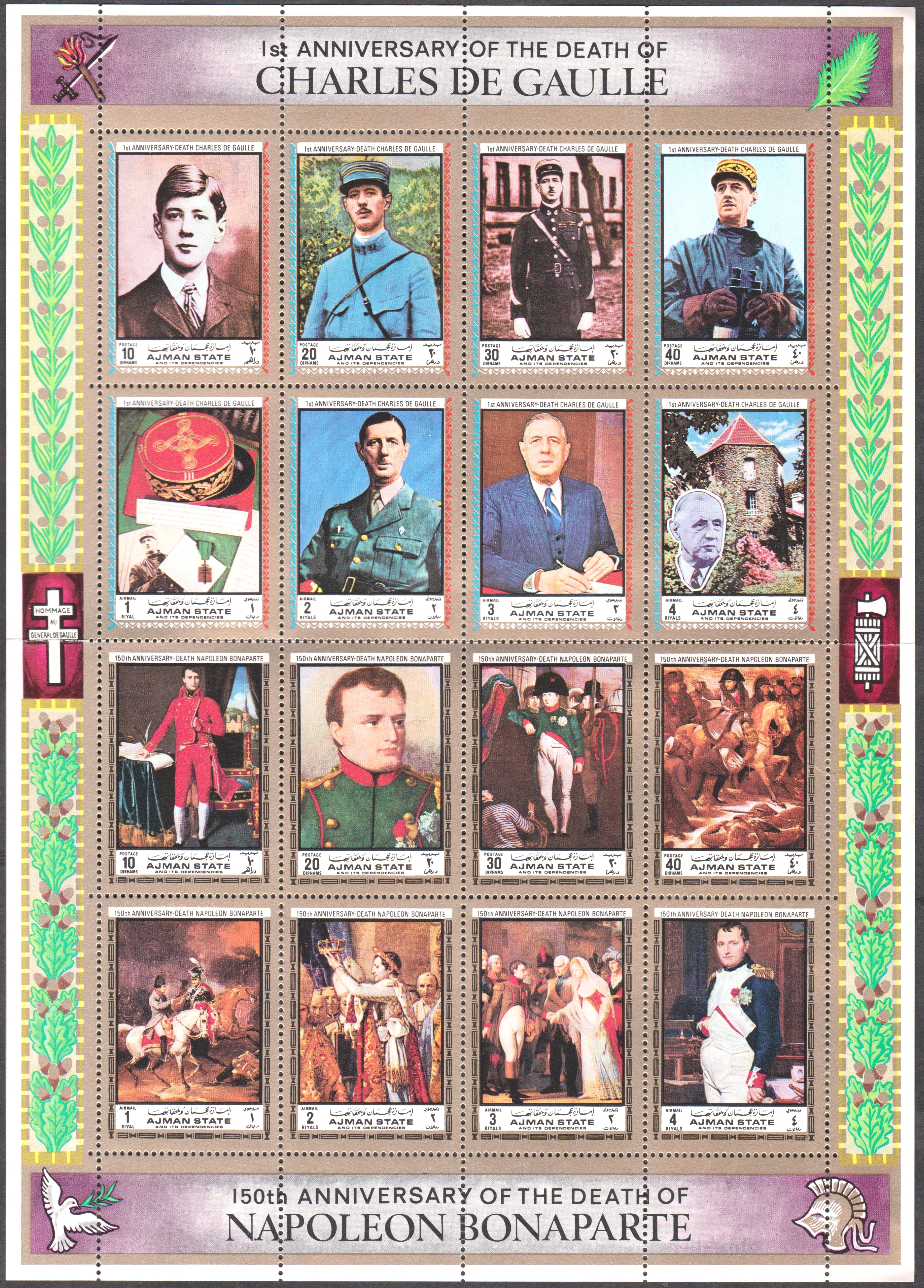 Ajman MiNr. 2605 A - 2620 A erschienen im Kleinbogen.