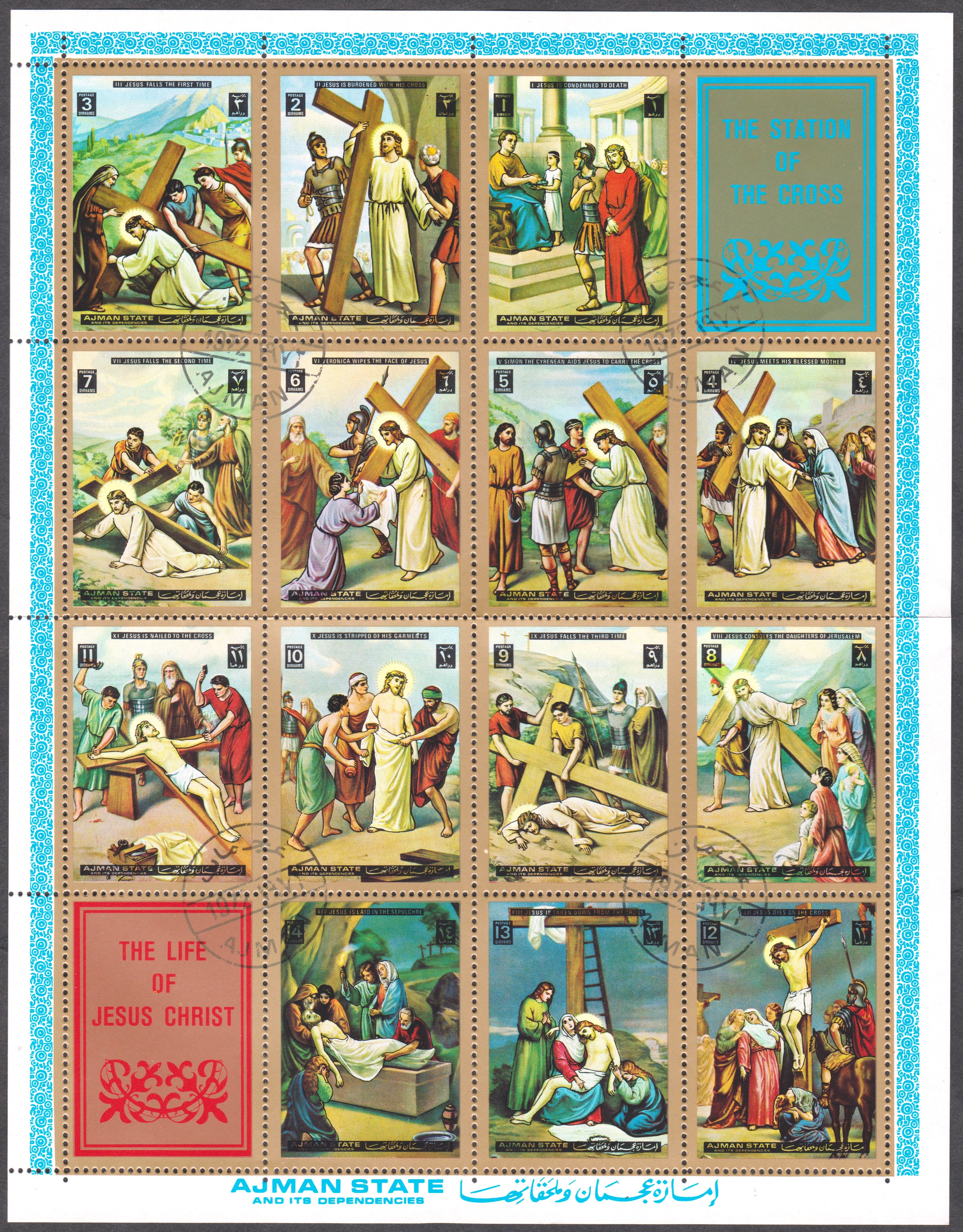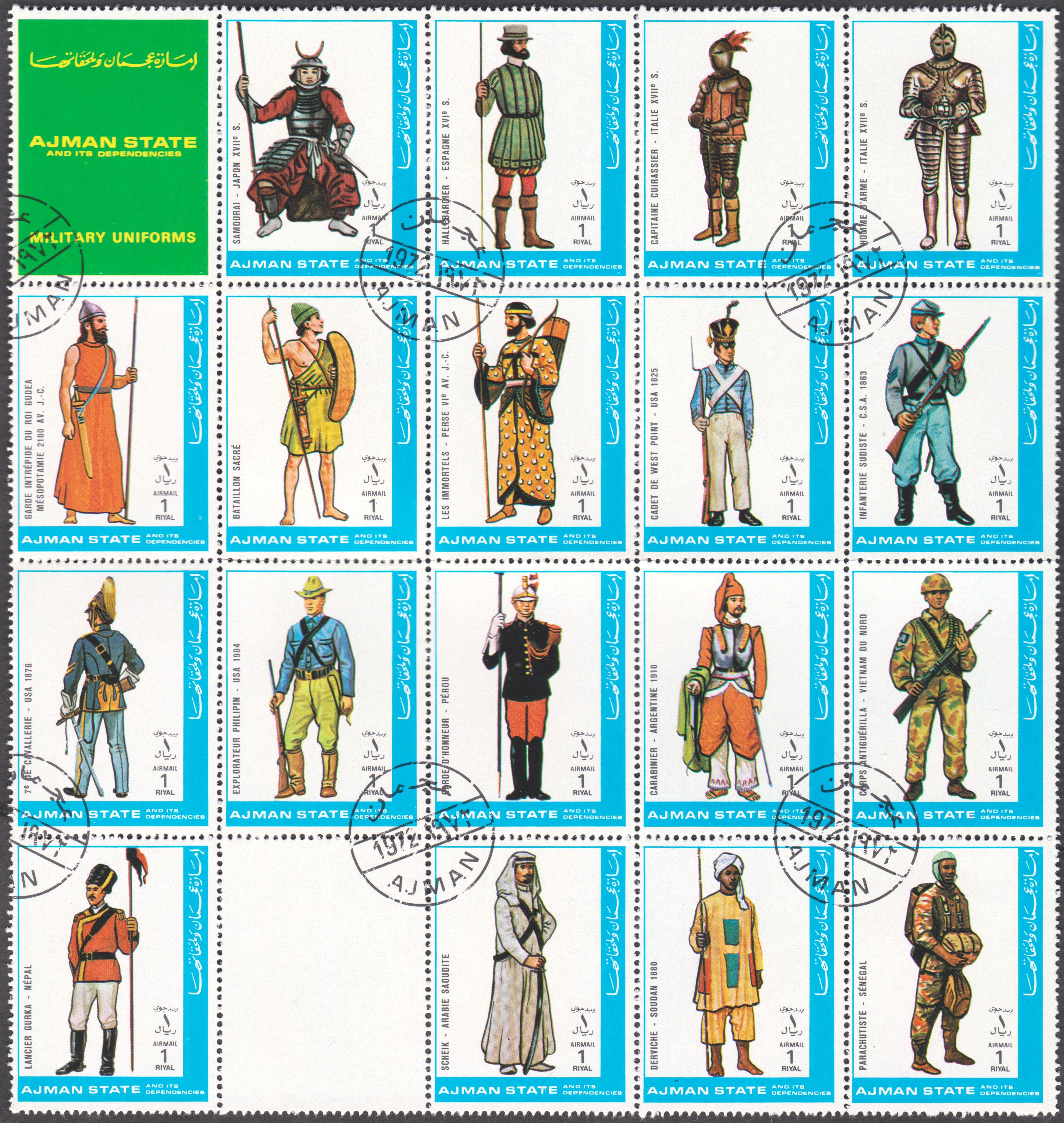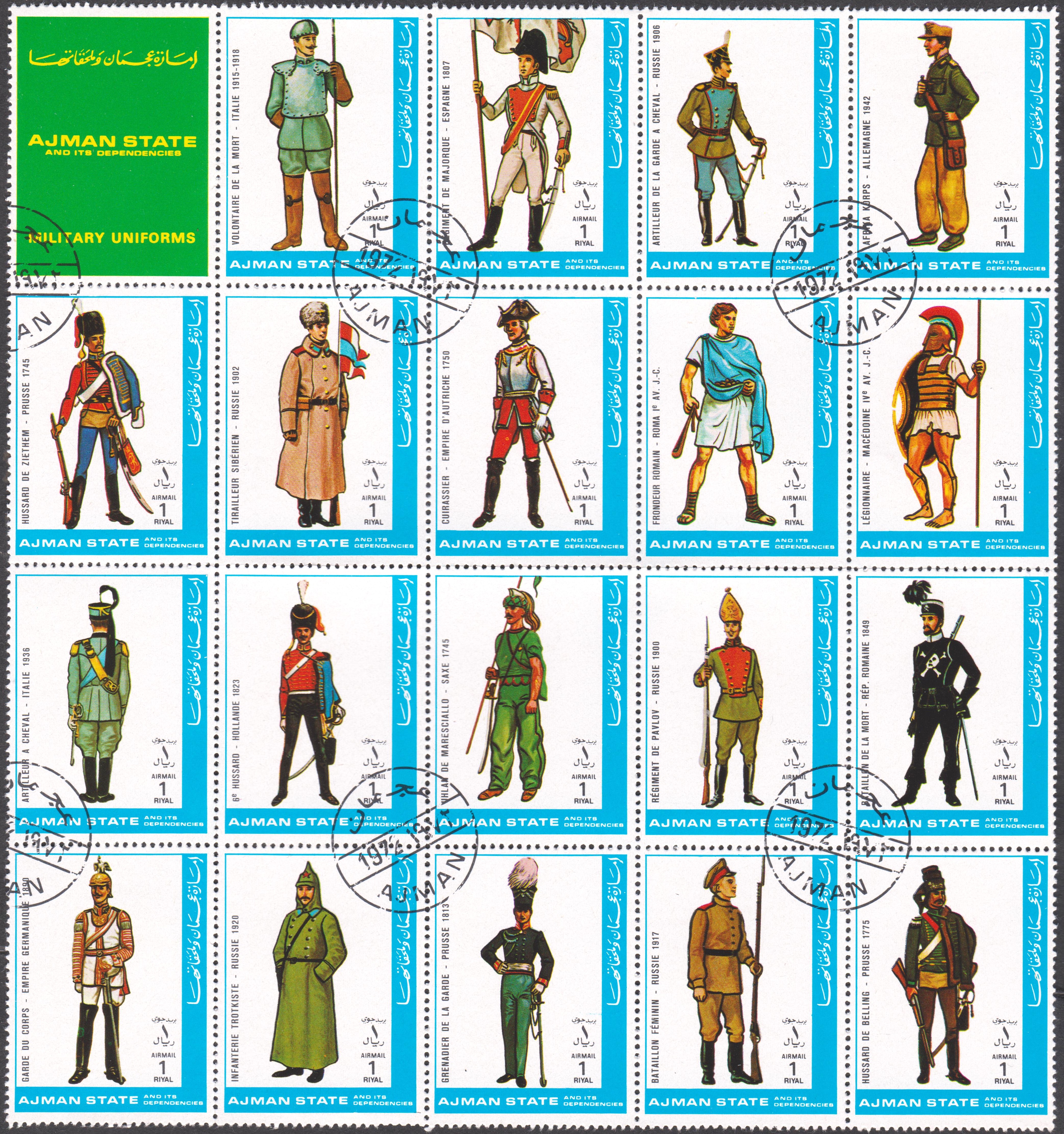 Ajman MiNr. 2013 A - 2028 A wujrden im Zusammendruckbogen zu 4x4 Marken zusammenhängend gedruckt:
