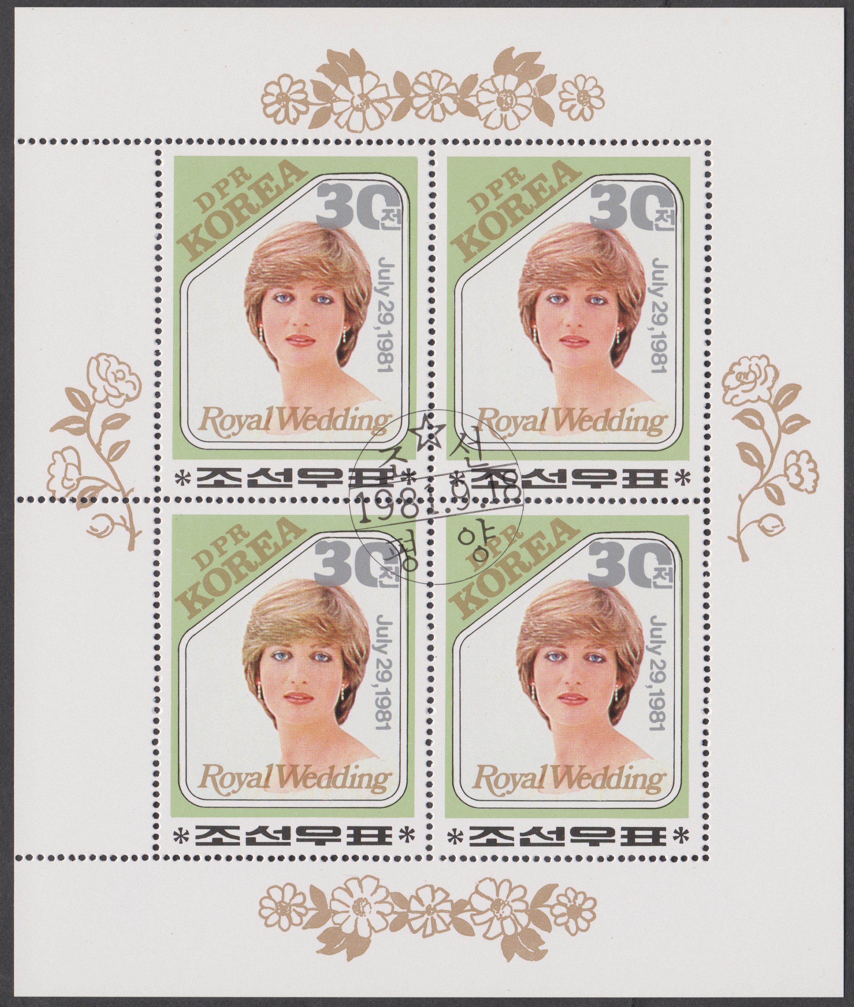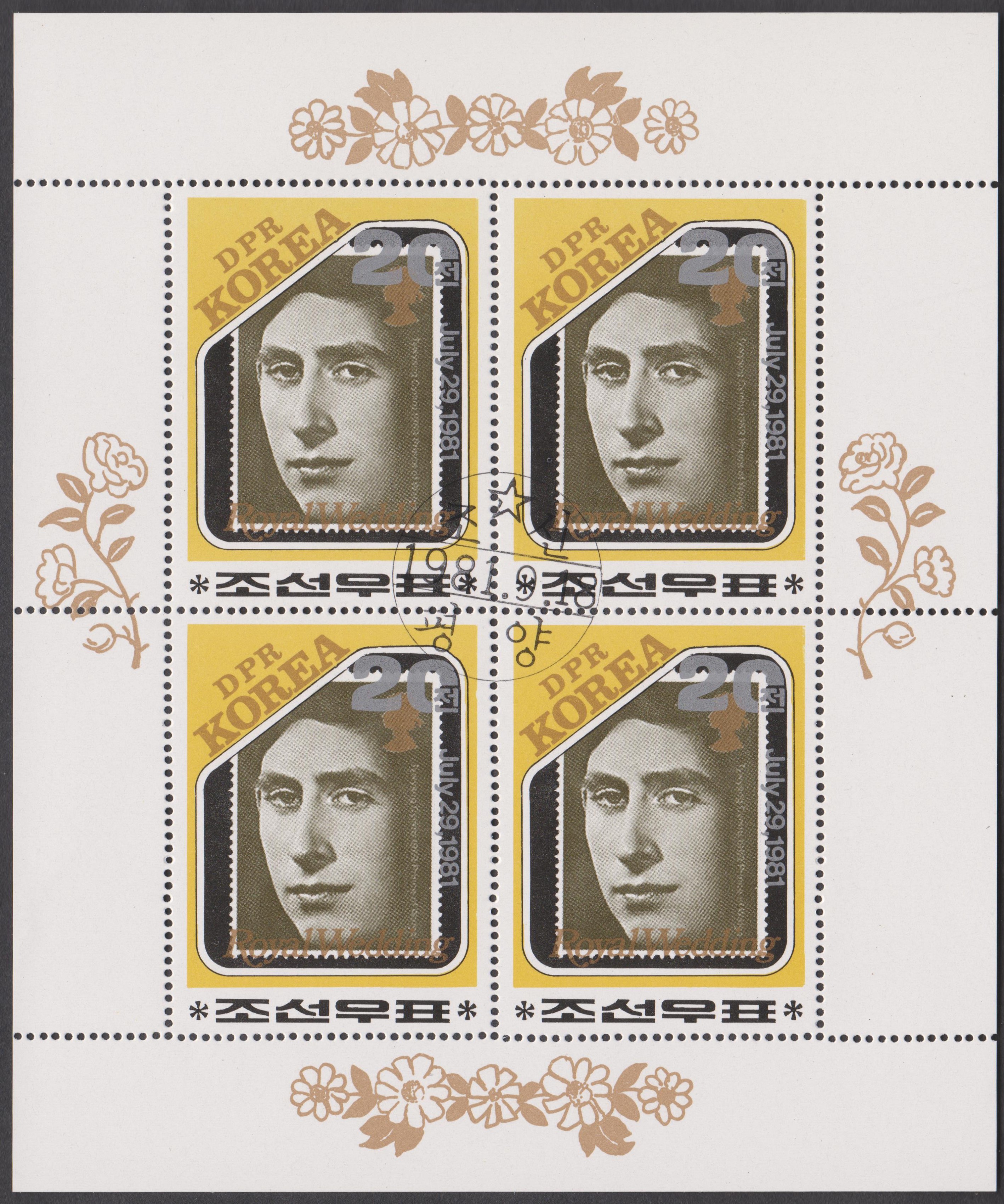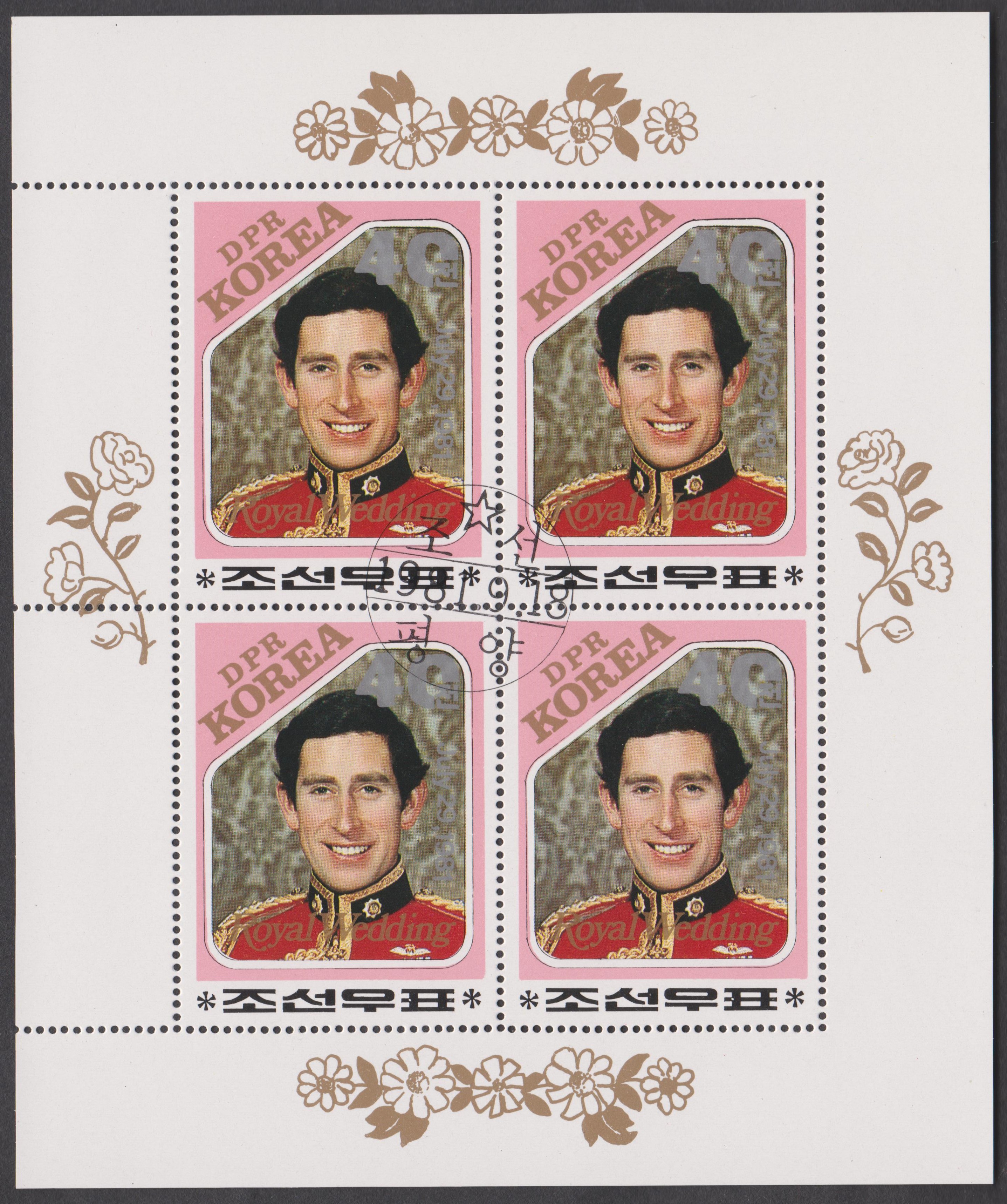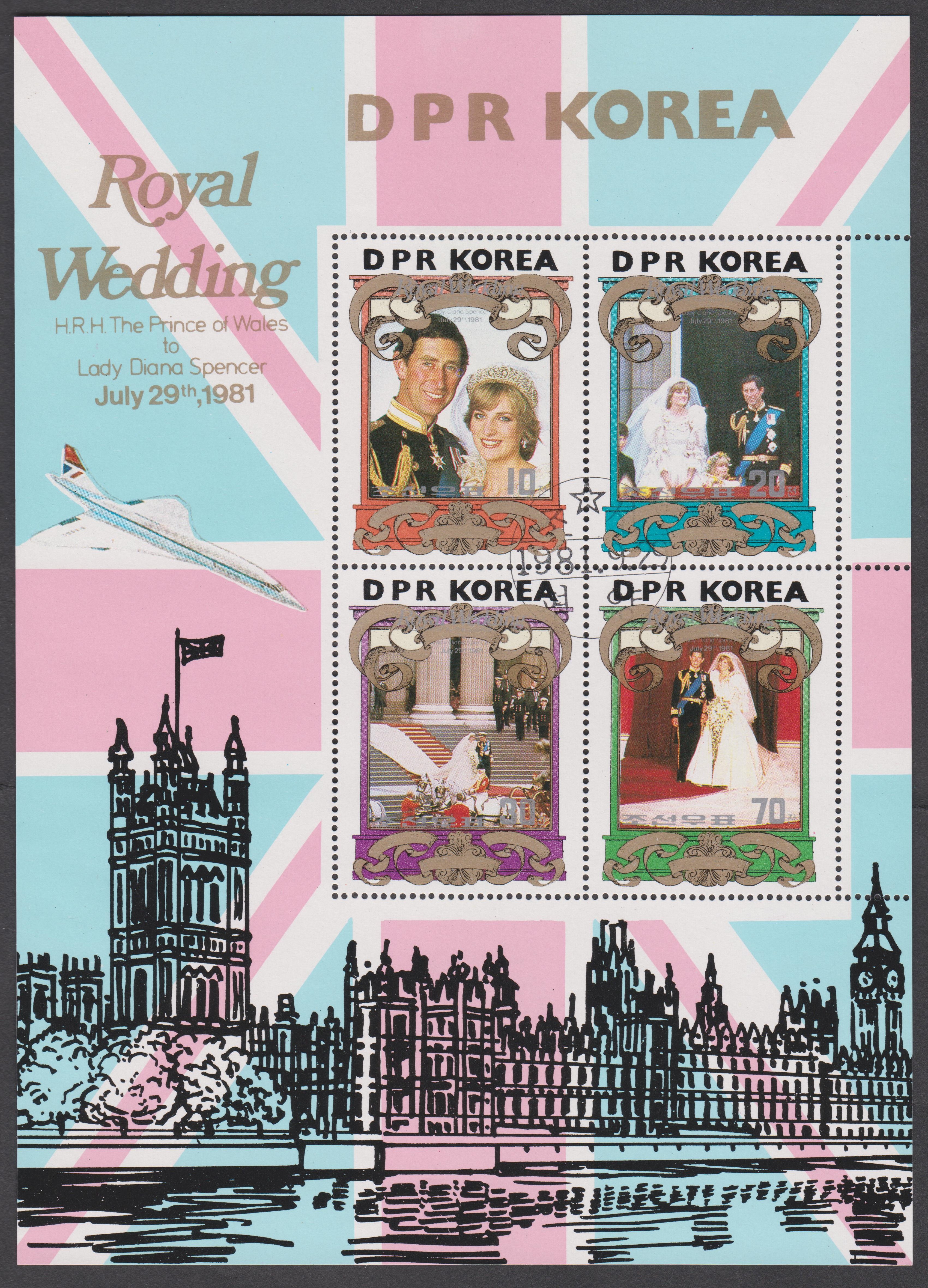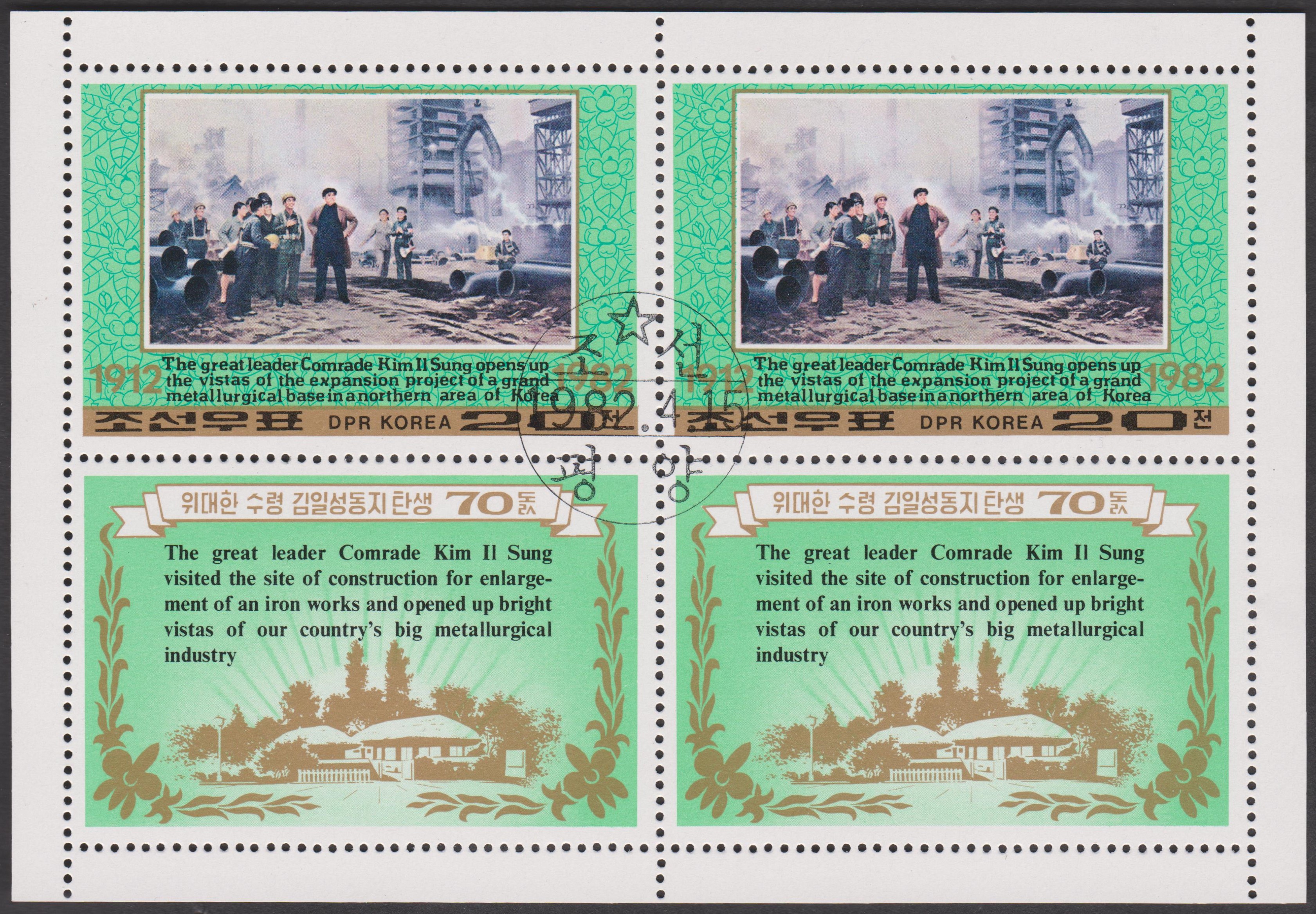 Nordkorea Block 73 A mit MiNr. 1996, A 1996 und B 1996 erschien am 06.05.1980 zum Thema Internationale Briefmarkenausstellung London 1980 und zeigt als Motive Großbritannien MiNr. 1, British Guiana MiNr. 9 sowie Nordkorea MiNr. 1: