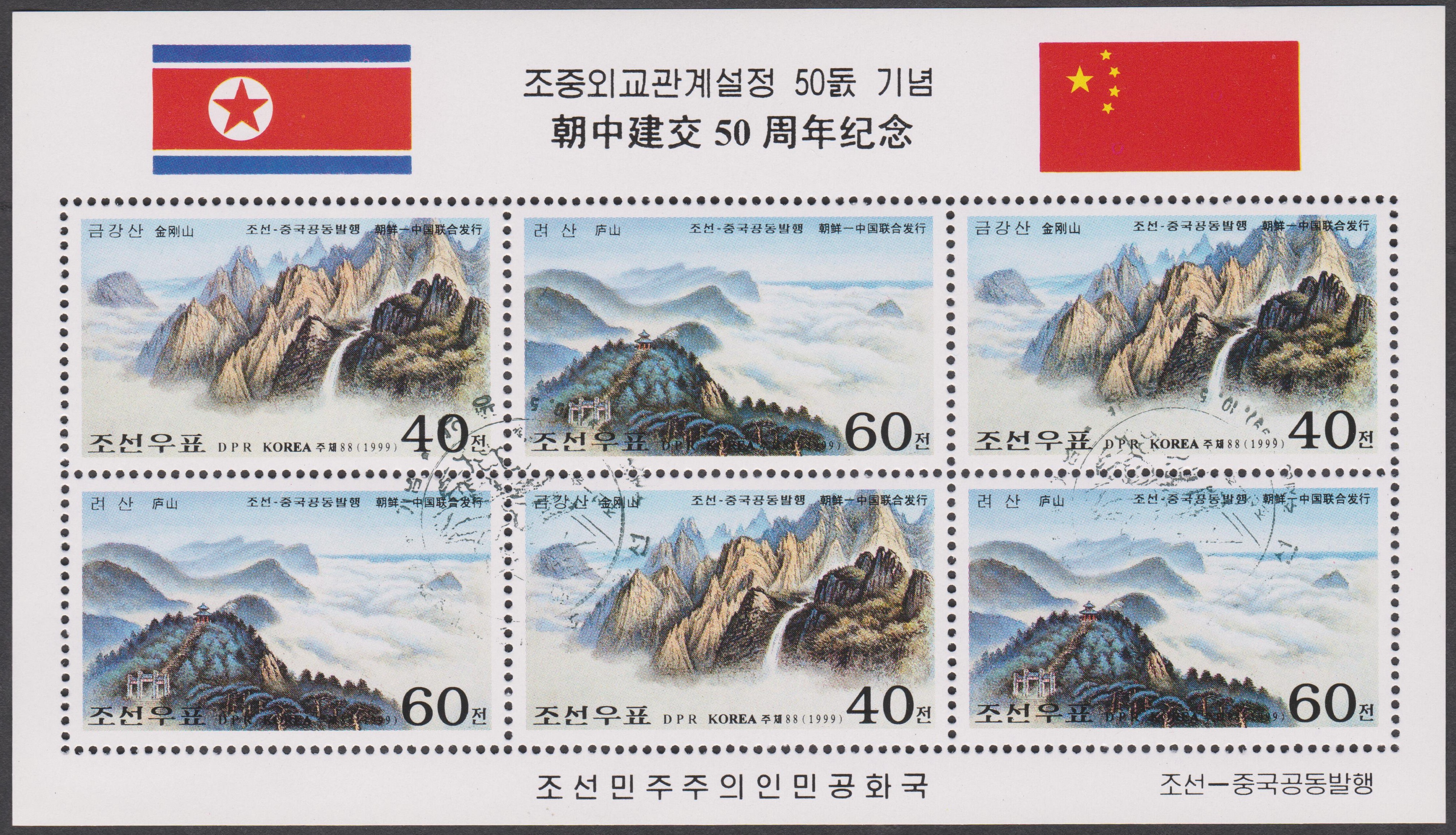 Nordkorea MiNr. 4390 - 4391 erschienen am 05.10.1999 als Patallelausgabe von Nordkorea und China aus Anlaß des 50-jährigen Bestehens diplomatscher Beziehungen: