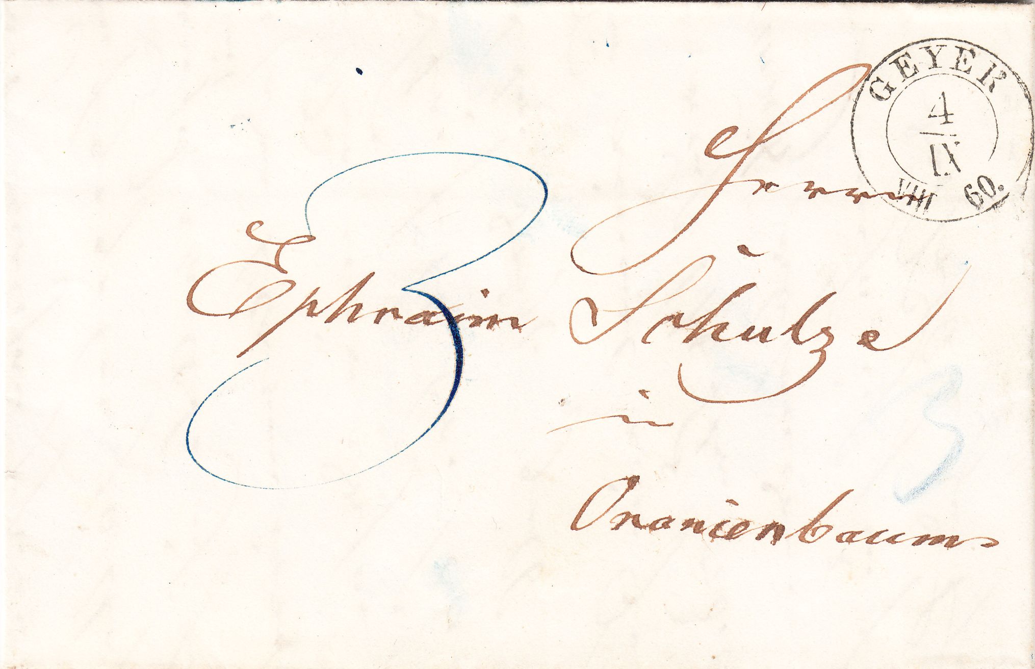 Markenloser Brief 1860 von Geyer nach Oranienbaum