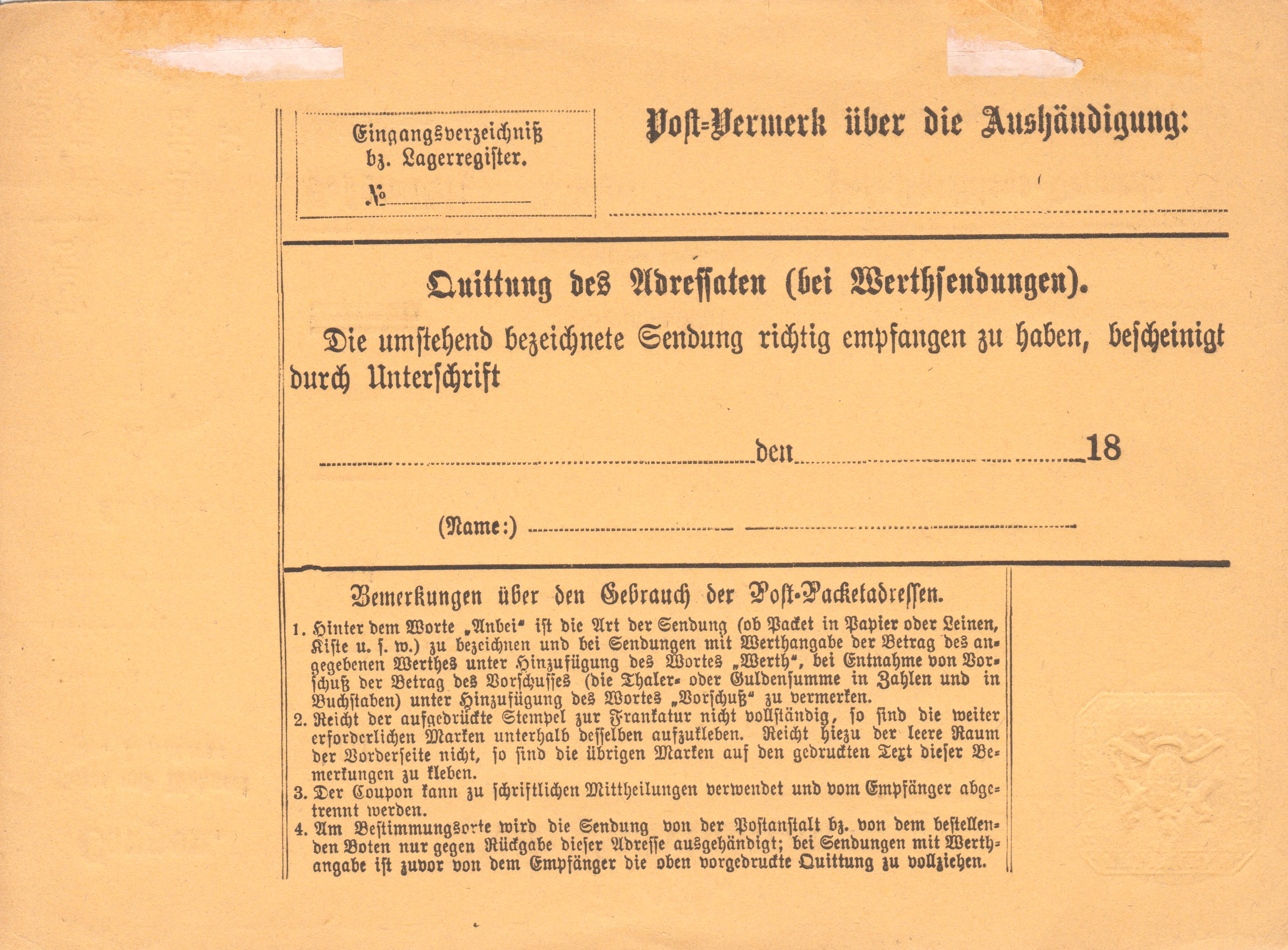 Ganzsache "Noth-Post-Packetadresse" 1877