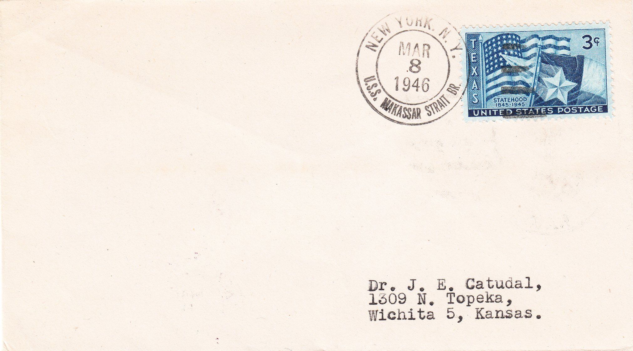 Dieser Beleg vom 08.03.1946 dokumentiert, dass die USS MAKASSAR STREET (CVE-91) zu dieser Zeit in New York im Hafen lag: