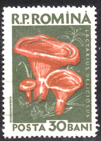 Auf einer Marke aus Rumänien (MiNr 1724) ist der Edel-Reizker oder Echte Reizker (Lactarius deliciosus) zu sehen. Bei Michel wird so geschrieben: Edelreizker.