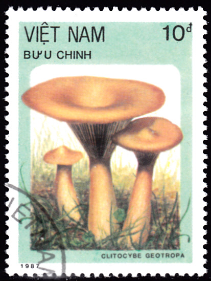 Auf einer Marke aus Vietnam (MiNr 1877) ist ein Mönchskopf (Infundibulicybe geotropa) zu sehen.