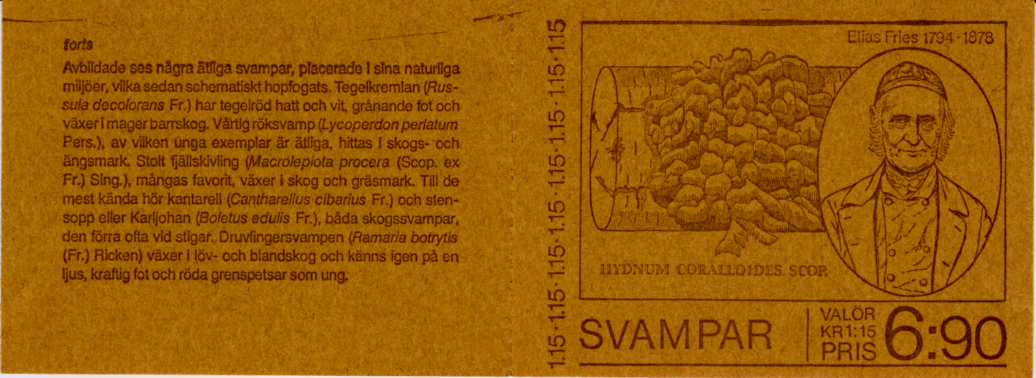 Die gezeigte Marke aus Schweden wurde mit fünf weiteren Marken zusammen in einem Markenheftchen (MiNr MH 69) gedruckt. Hier zeige ich auch das komplette Heftchen.