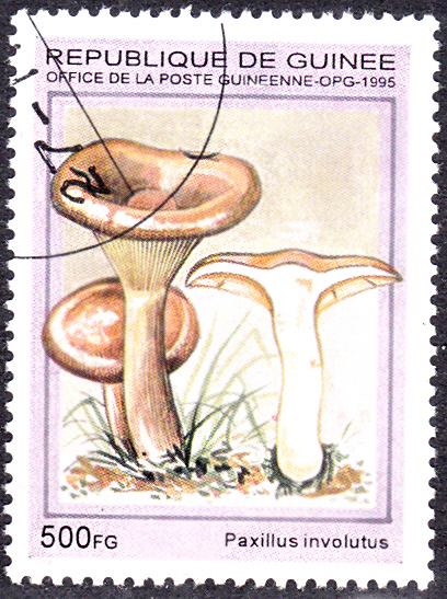 Auf einer Marke aus Guinea (MiNr 1572) ist ebenfalls ein Kahler Krempling (Paxillus involutus) abgebildet.