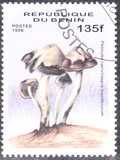 Psilocybe caerulescens ist eine Pilzart der Gattung Psilocybe in der Familie Hymenogastraceae. Es gibt zahlreiche Synonyme. Auf dieser Marke aus Benin (MiNr 853) werden Pilze der Art Psilocybe caerulescens mazatecorum gezeigt.