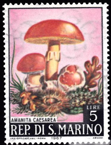Aus San Marino kommt eine Marke (MiNr 891) mit einem Kaiserling (Amanita caesarea).