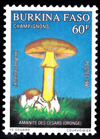 Auch auf einer Marke aus Burkina Faso (MiNr 1233) ist ein Kaiserling (Amanita caesarea) zu sehen.