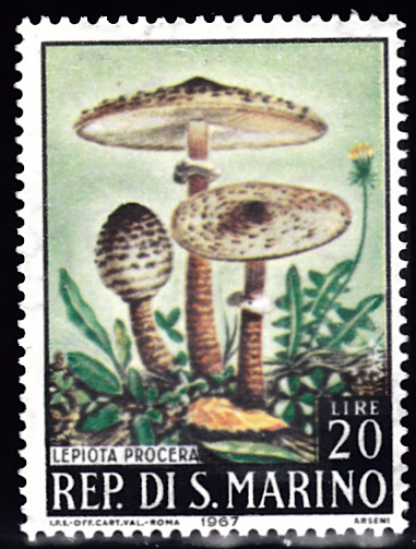 Auch in San Marino ist eine Marke mit dem Gemeinen Riesenschirmling (Macrolepiota procera) erschienen.