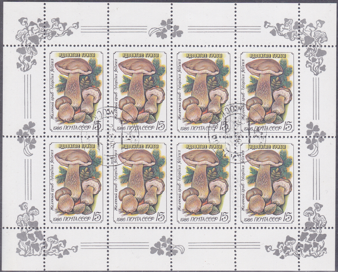 Diese Marke der Sowjetunion (MiNr 5606) mit den Gallenröhrlinge (Tylopilus felleus) wurde auch in einem Kleinbogen (4×2) gedruckt.