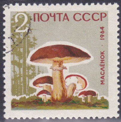 Auf dieser Marke aus Polen (MiNr 1094) ist ein Butterpilz (Suillus luteus) zu sehen.
