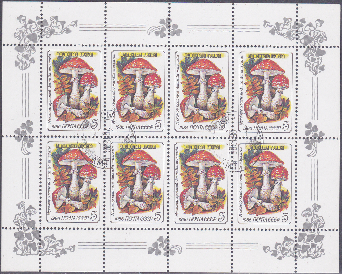 Die bereits gezeigte Marke der Sowjetunion (MiNr 5604) mit dem Fliegenpilz (Amanita muscaria) wurde auch in einem Kleinbogen (4×2) gedruckt.