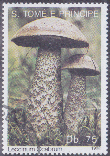 Aus Sao Tomé und Principe kommt diese Marke (MiNr 1346) mit einem Birkenpilz (Leccinum scabrum).