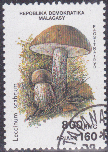 Auch auf einer Marke aus Madagaskar (MiNr 1293) ist ein Birkenpilz (Leccinum scabrum) abgebildet.
