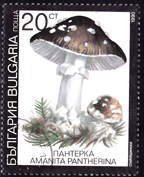 Ein weiterer Pantherpilz (Amanita pantherina) ist auf dieser Marke aus Bulgarien (MiNr 3888) zu sehen.