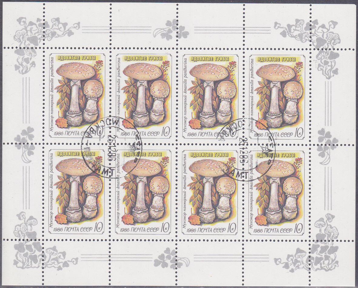 Die bereits gezeigte Marke der Sowjetunion (MiNr 5605) mit den zwei Pantherpilzen (Amanita pantherina) wurde auch in einem Kleinbogen (4×2) gedruckt.