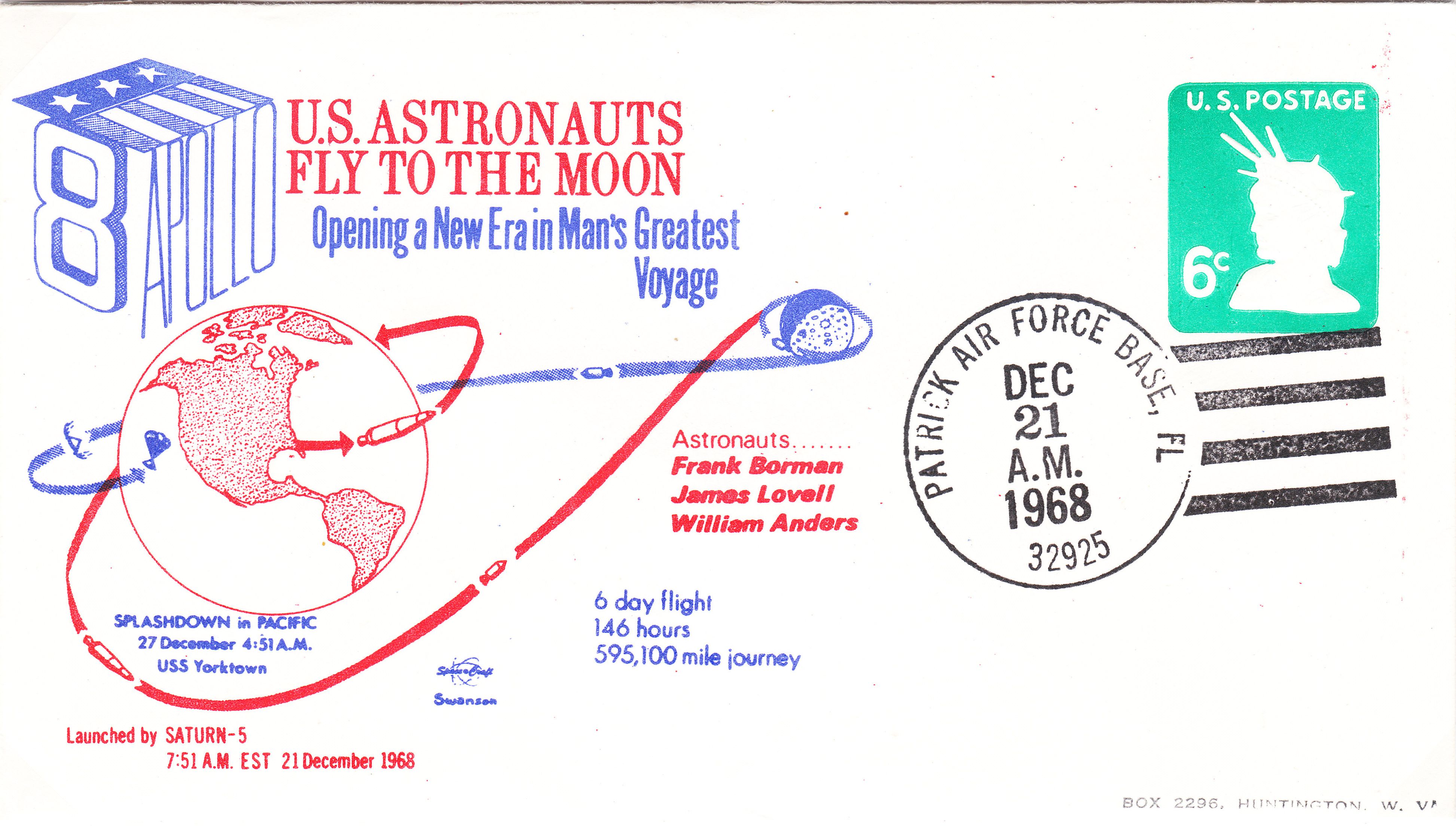 Interessant ist der Nebenstempel "APOLLO 8 landed today"!