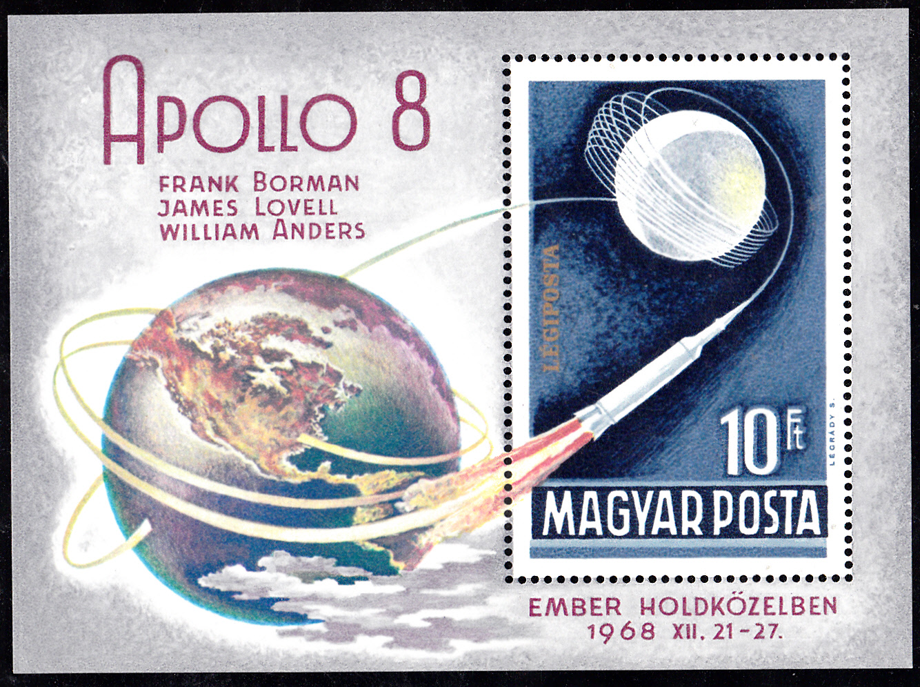 In Ungarn erschien in der Serie "Der Weg zum Mond" auch eine Marke (MiNR 2552 A) mit einer Darstellung zur Apollo 8 - Mondumkreisung