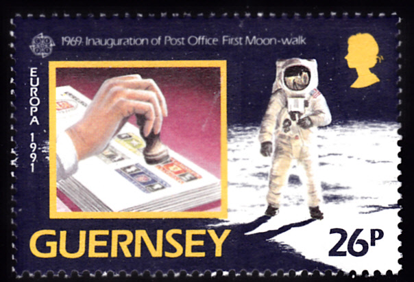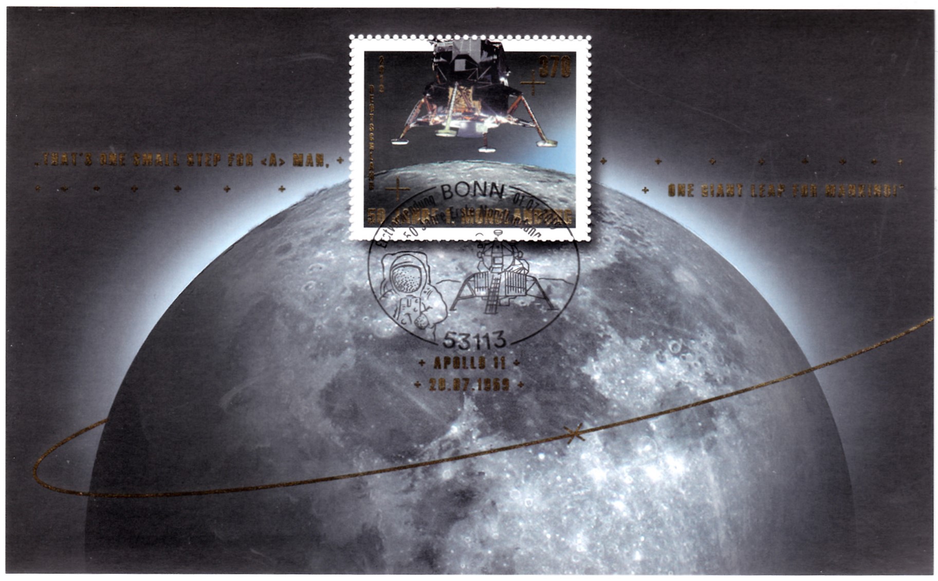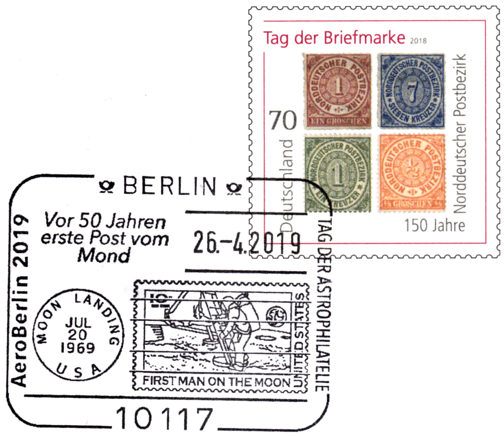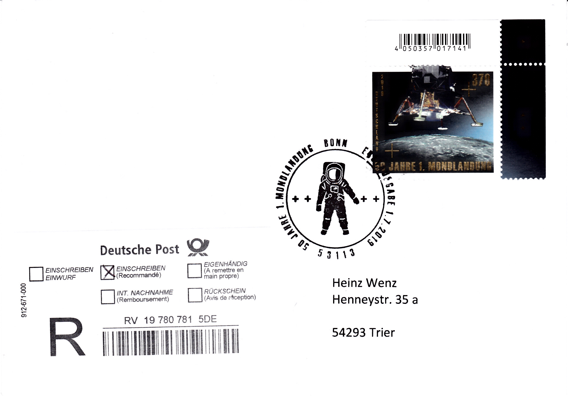 Am 1. Juli 2019 ist bei der Deutschen Post in der Serie "Mikrowelten" auch eine Marke (MiNr 3478) mit einer Abbildung von Mondgestein erschienen. Hier zeige ich ein Eckrandstück mit EAN-Codierung.