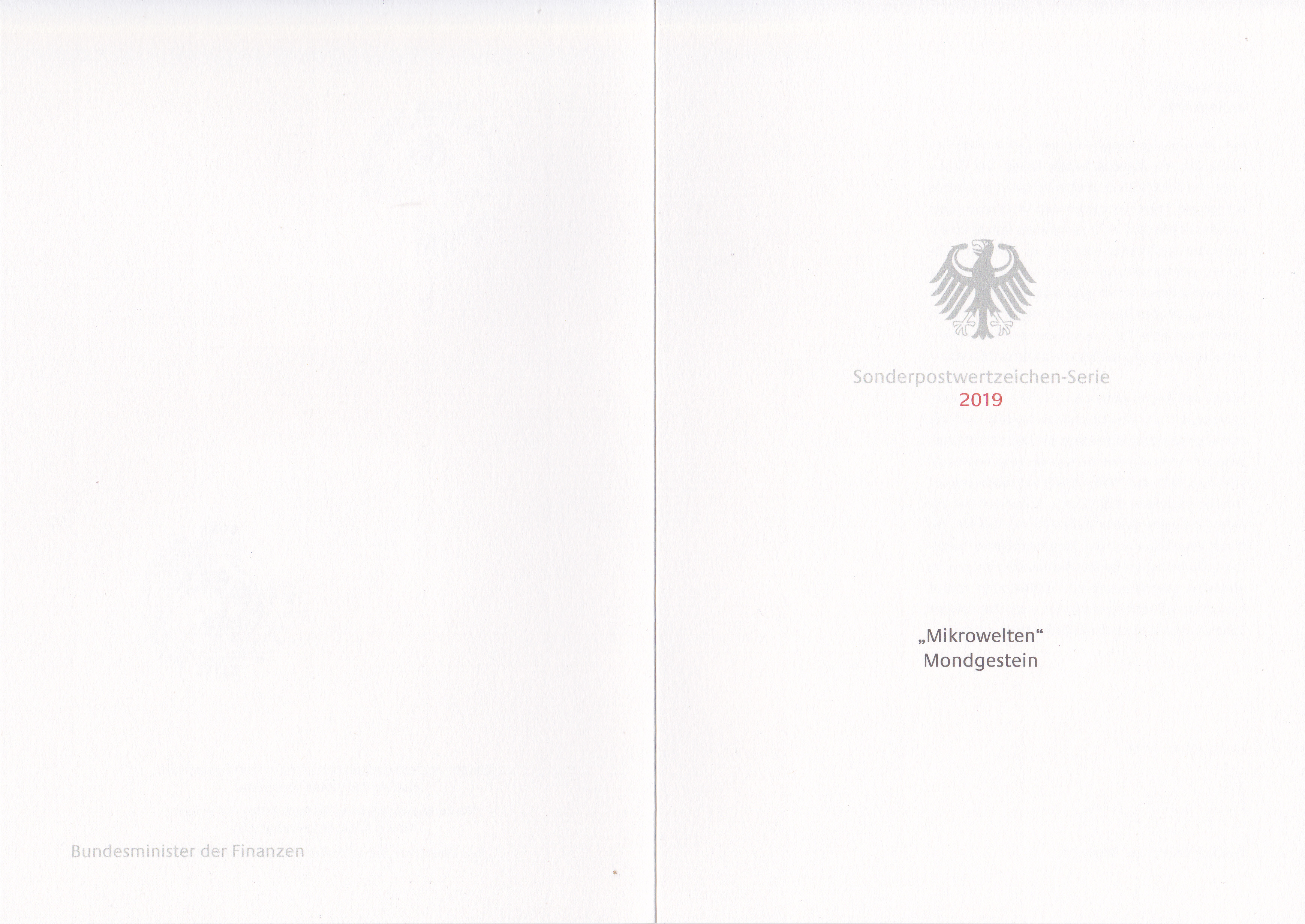 Ministerkarte des Finanzministers mit zwei Marken aus der Serie "Mikrowelten" mit dem Motiv "Mondgestein in 30-facher Vergrößerung" (MiNr 3478) mit den beiden Ersttagsonderstempel Bonn und Berlin.