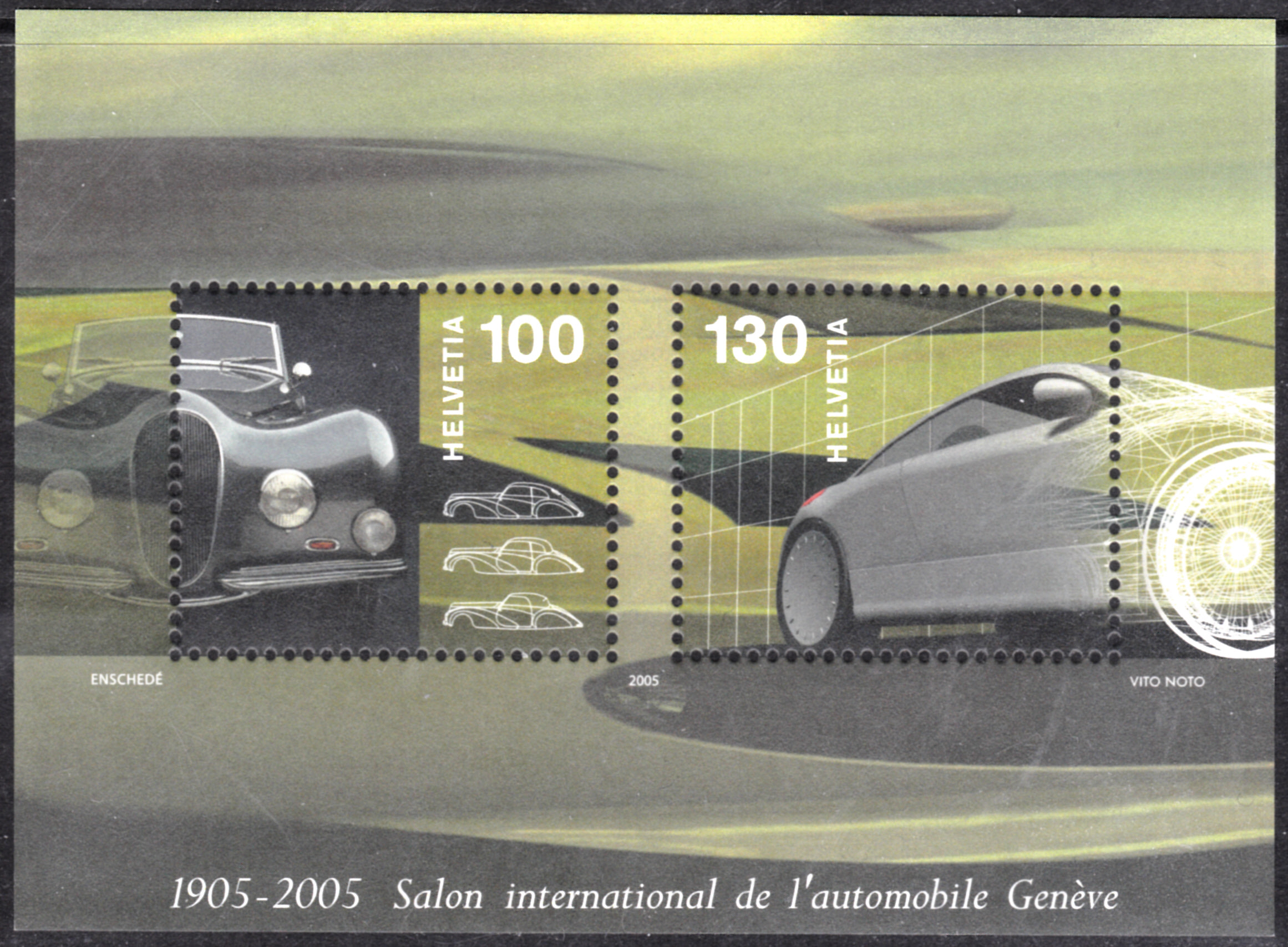 In der Schweiz ist zum Jubiläum "100 Jahre Automobil-Salon in Genf" eine Blockausgabe mit zwei Marken (MiNr Block 38 mit den Marken MiNr 1911/1912) erschienen.