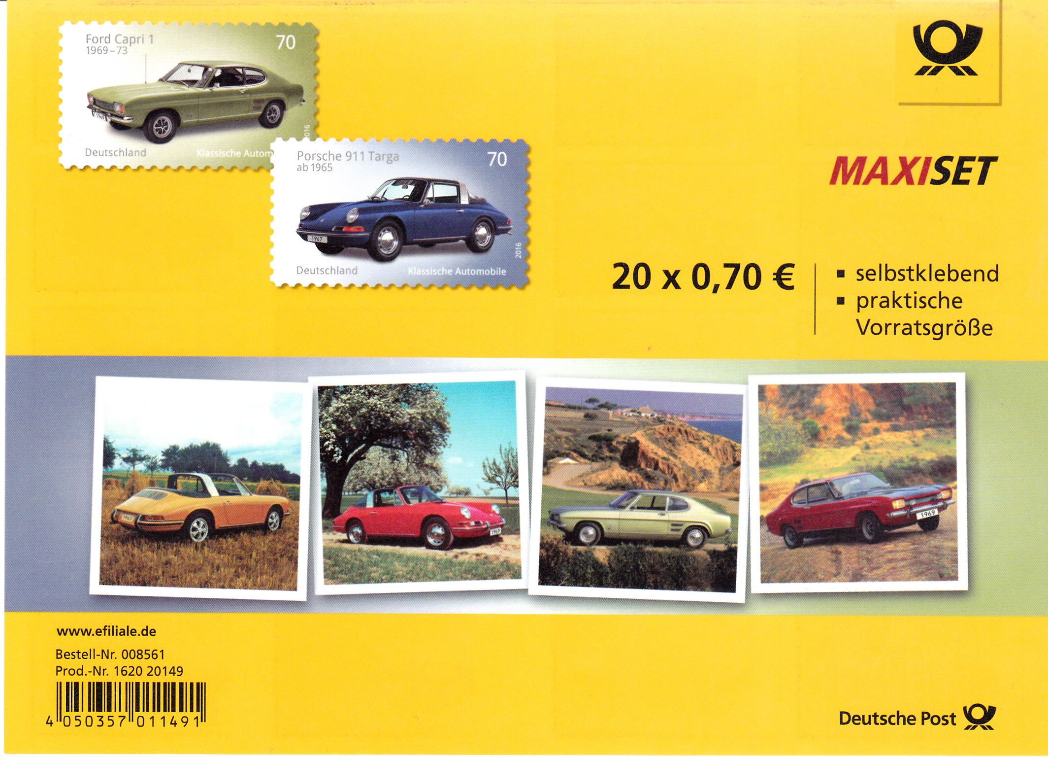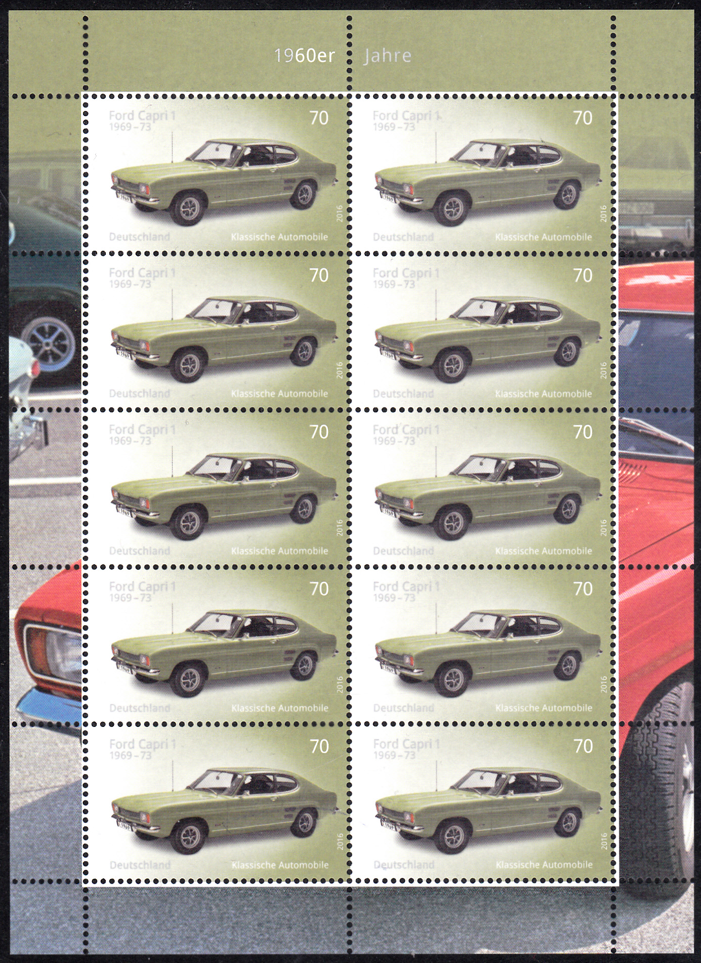 Am 11.2.2016 ist die Marke mit dem Ford Capri 1 auch in einem etwas kleineren Format als selbstklebende Marke (MiNr 3214) in einem Folienblatt erschienen.