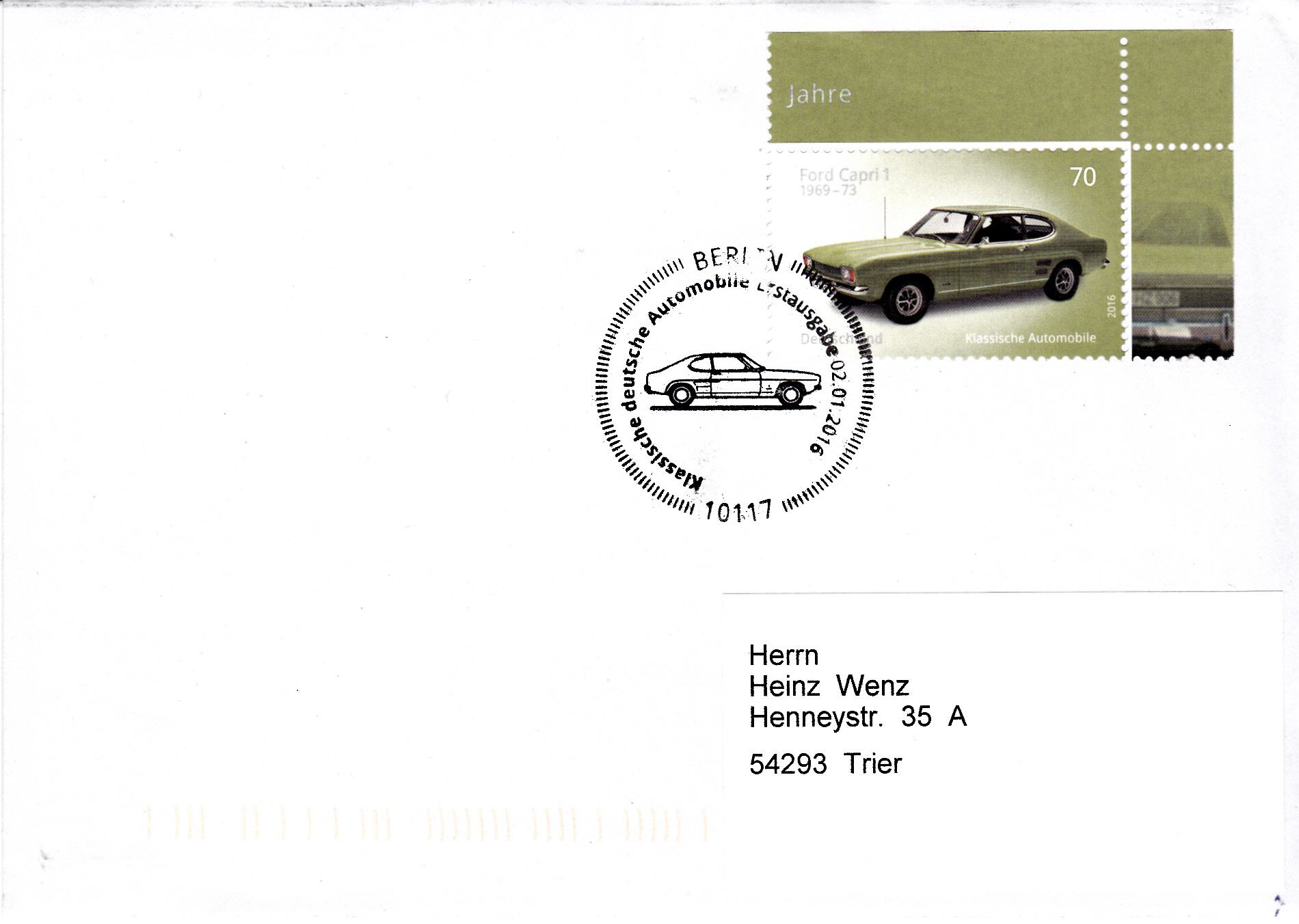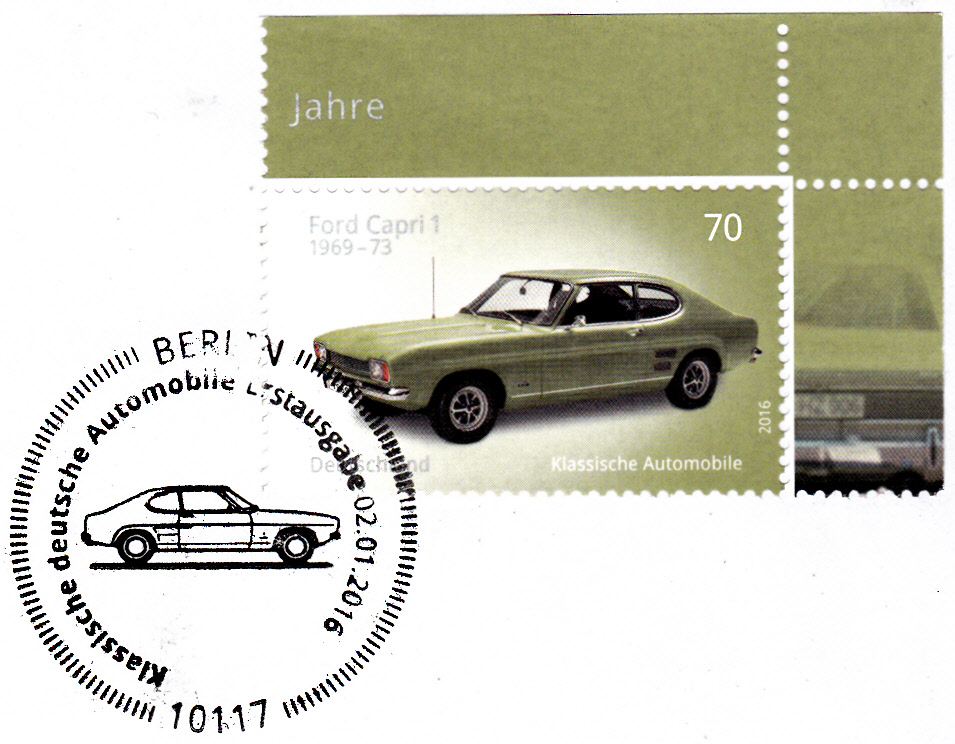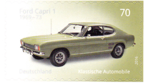 Bei der Deutschen Post erschien am 2.1.2016 eine Marke (MiNr 3202) mit einem Ford Capri 1 im Markenbild.