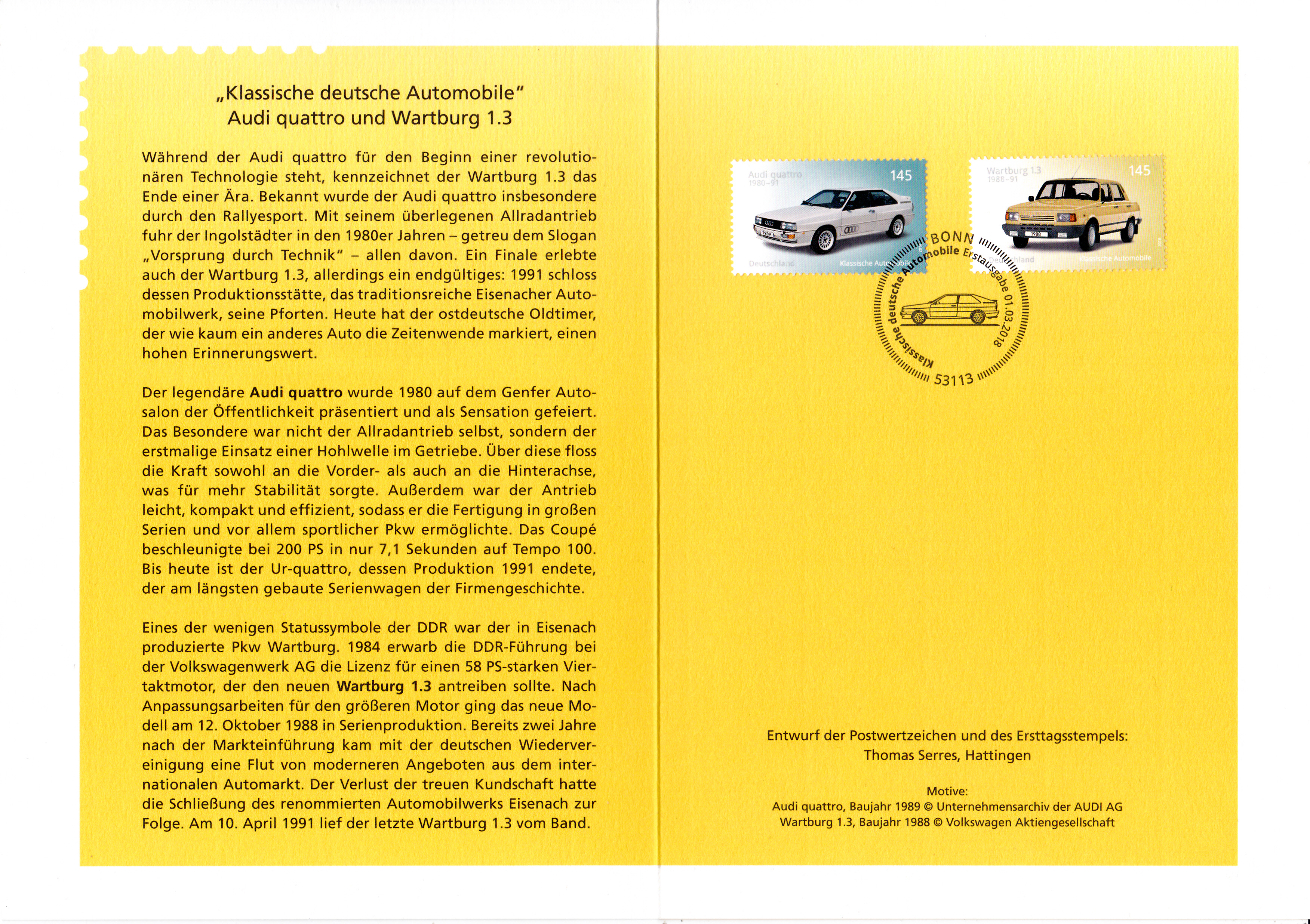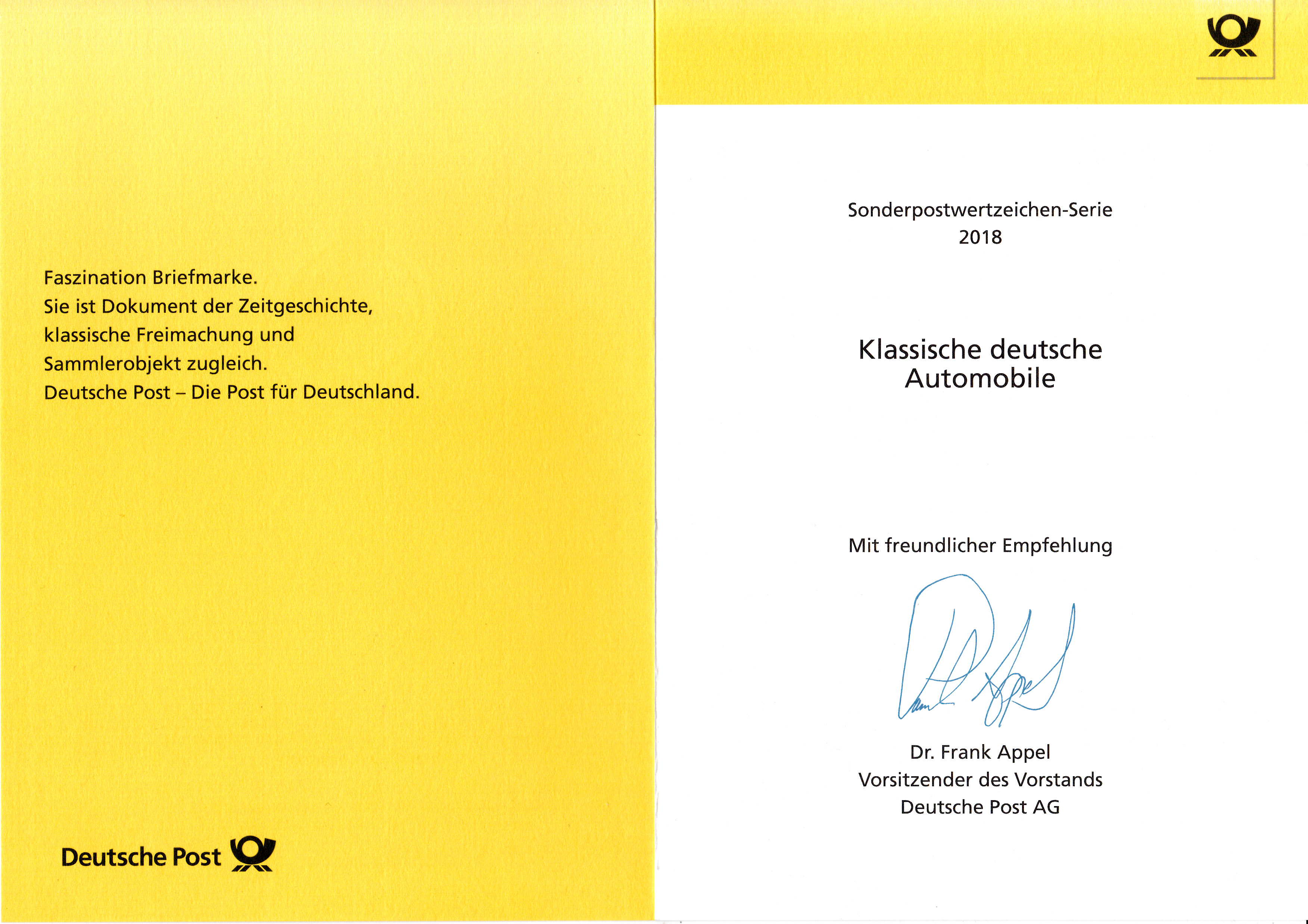 Klappkarte des Vorstandsvorsitzenden der Deutschen Post AG mit diesen beiden Marken und dem Ersttagstempel aus Bonn.