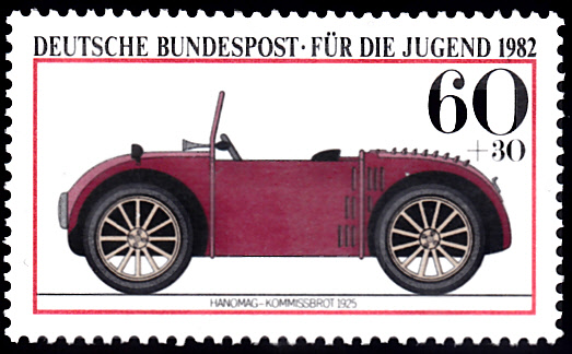 Auf der Jugendmarke 1982 zu 60+30Pf (MiNr 1125) ist ein Hanomag 2/10 PS "Kommissbrot" abgebildet.
