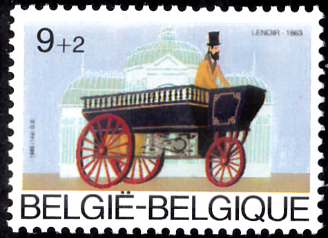 Auf einer Marke der Serie "Belgische Automobile" (Belgien MiNr 2284) wird uns das Lenoir Hippomobile vorgestellt.