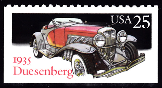 Auf einer Marke aus den USA (MiNr 2001) wird ein Duesenberg aus dem Jahre 1935 gezeigt. Insgesamt wurden von Duesenberg Motor Company zwischen 1920 und 1937 nur 1250 Fahrzeuge hergestellt.