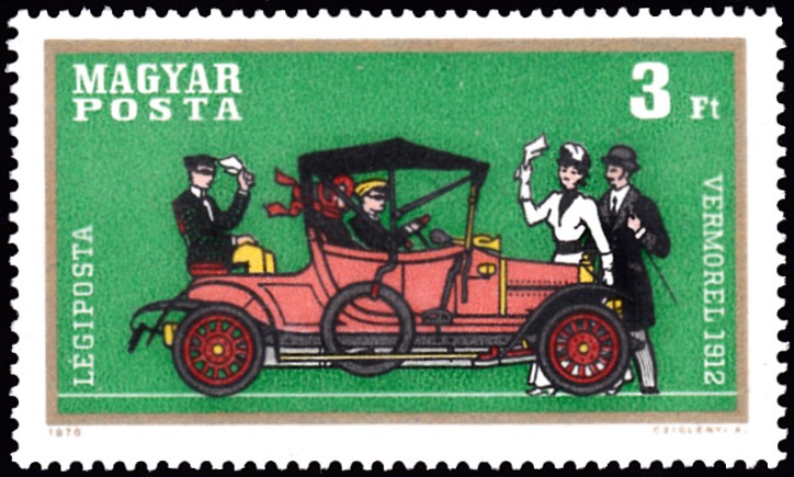 Eine Marke aus Ungarn (MiNr 2570 A) zeigt ein Vermorel Baujahr 1912.