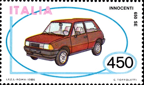 Auf dieser Marke aus Italien (MiNr 1983) wird ein Innocenti 650 SE gezeigt. Er wurde zwischen 1986 und 1988 hergestellt.