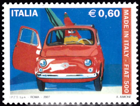 Diese Marke aus Italien (MiNr 3192) zeigt einen Fiat Nuova 500 Baujahr 1968.