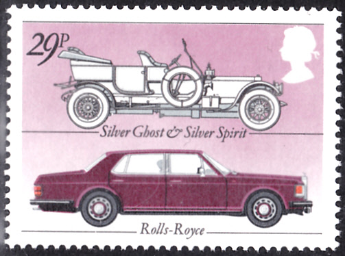 Auf der Marke aus Großbritannien (MiNr 932) ist auf dem oberen Teil der Marke ein Rolls-Royce Silver Ghost Baujahr 1907 zu sehen.