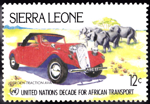 Auf einer Marke aus Sierra Leone (MiNr 752) wird ein Citroën Traction Avant, genauer gesagt ein 15 CV Cabriolet, gezeigt. Von diesem Modell wurden nur vier Stück hergestellt.