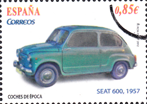 Auf einer Marke aus Spanien (MiNr 4699) ist ein Seat 600 aus dem Jahre 1957 abgebildet. Die Marke wurde zusammen mit drei weiteren Marken in einem Block (MiNr Block 222) verausgabt.