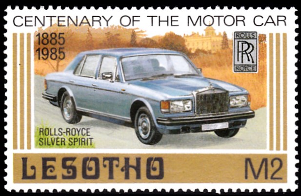Aus Lesotho kommt diese Marke (MiNr 523) mit einem Rolls-Royce Silver Spirit.